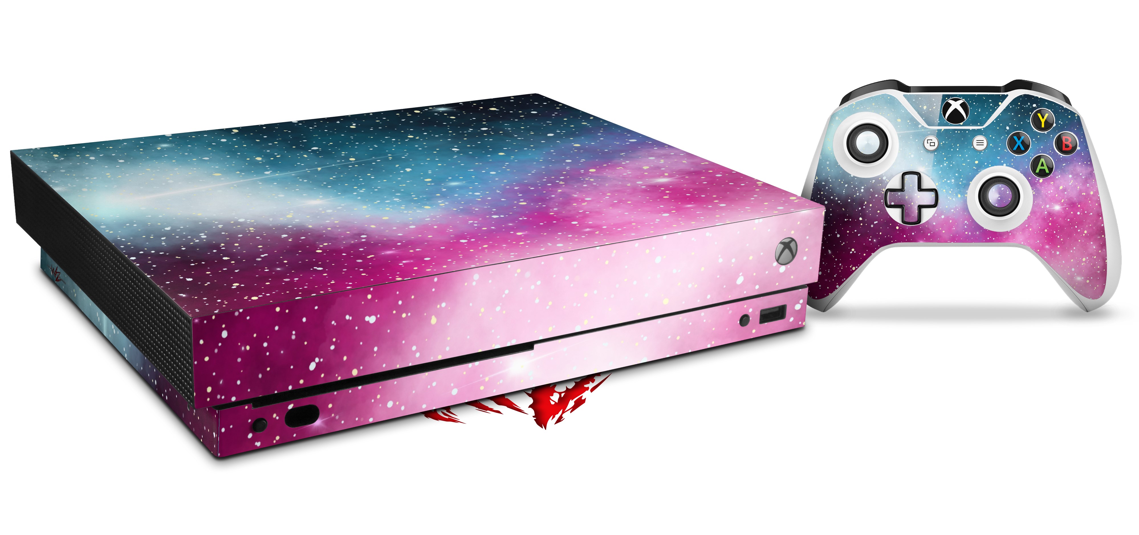 Skin Wrap compatible with XBOX One X Console and Controller Dynamic Pink Galaxy