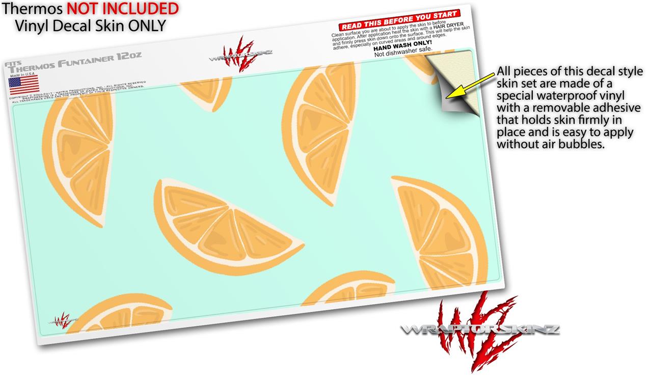Skin Decal Wrap compatible with Thermos Funtainer 12oz Bottle Oranges Blue (BOTTLE NOT INCLUDED)