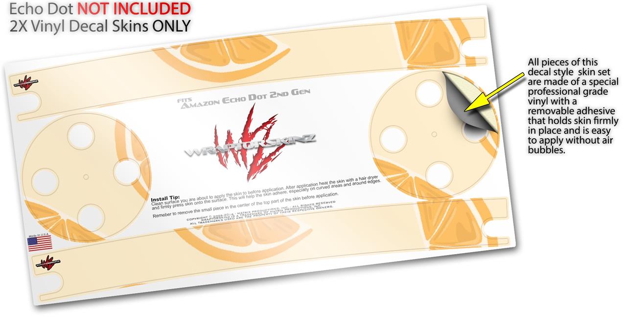 Skin Wrap Decal Set 2 Pack compatible with Amazon Echo Dot 2 Oranges Orange (2nd Generation ONLY - Echo NOT INCLUDED)
