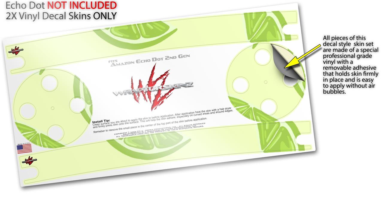 Skin Wrap Decal Set 2 Pack compatible with Amazon Echo Dot 2 Limes Yellow (2nd Generation ONLY - Echo NOT INCLUDED)