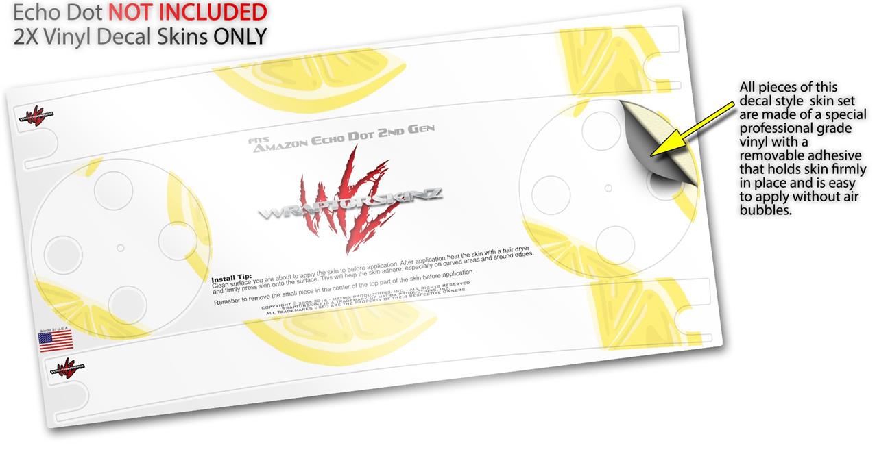 Skin Wrap Decal Set 2 Pack compatible with Amazon Echo Dot 2 Lemons (2nd Generation ONLY - Echo NOT INCLUDED)