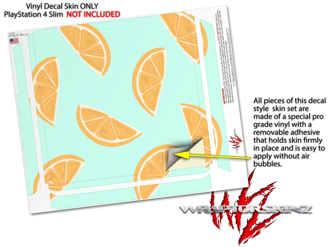 Vinyl Decal Skin Wrap compatible with Sony PlayStation 4 Slim Console Oranges Blue (PS4 NOT INCLUDED)