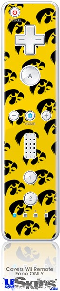Decal Skin compatible with Wii Remote Controller Face ONLY Iowa Hawkeyes Tigerhawk Tiled 06 Black on Gold