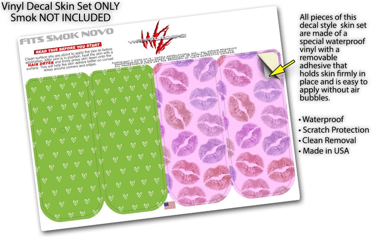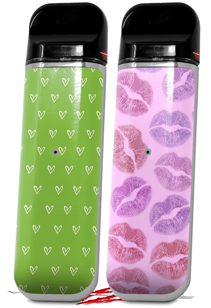 Skin Decal Wrap 2 Pack for Smok Novo v1 Hearts Green On White VAPE NOT INCLUDED