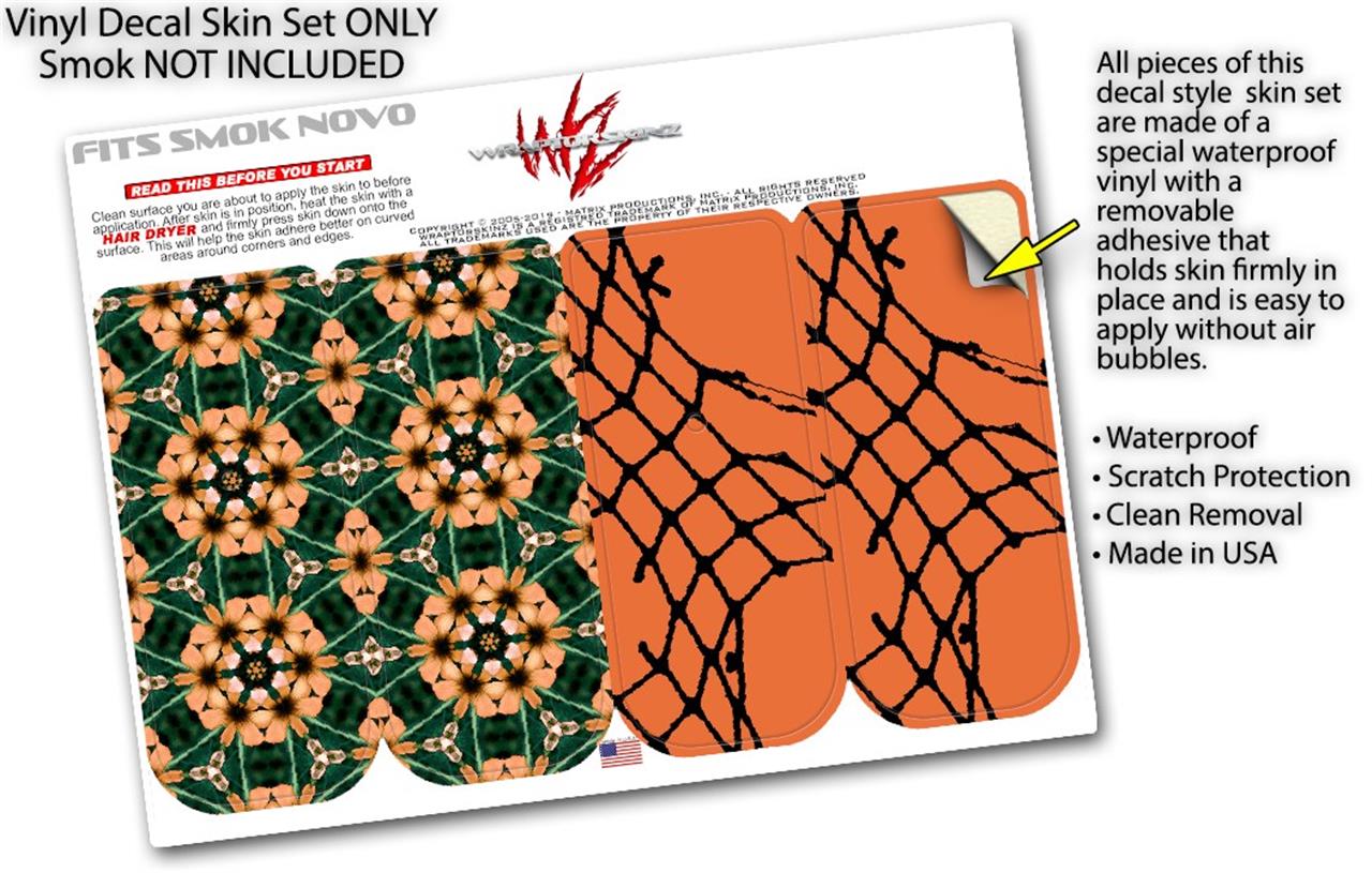 Skin Decal Wrap 2 Pack for Smok Novo v1 Floral Pattern Orange VAPE NOT INCLUDED