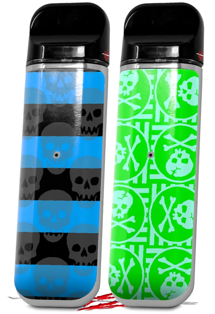 Skin Decal Wrap 2 Pack for Smok Novo v1 Skull Stripes Blue VAPE NOT INCLUDED