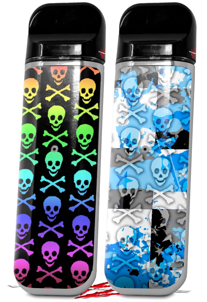Skin Decal Wrap 2 Pack for Smok Novo v1 Skull and Crossbones Rainbow VAPE NOT INCLUDED