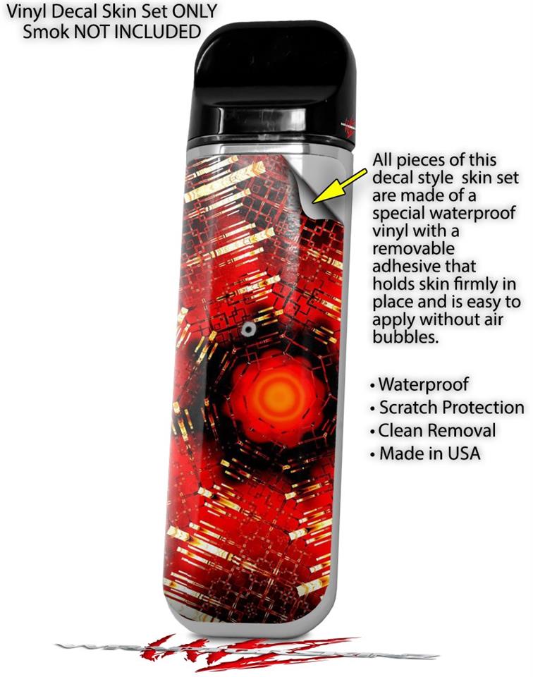WraptorSkinz® skin wraps are printed using superb photo quality designs and vibrant colors printed with special fade resistant inks that last even in direct sun for years. WraptorSkinz are a composite of two layers of commercial grade materials. The bottom layer is a soft, flexible vinyl with a special removable adhesive that is easily positioned, applied without air bubbles. Next we print the bottom layer with UV protected, fade resistant inks that deliver superb photo quality designs in vibrant colors. Last, we bond a professional grade laminate over the entire skin adding a glossy protective finish. This product is not affiliated with or endorsed by the Smok brand.