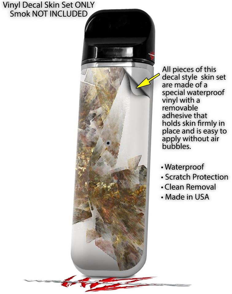 WraptorSkinz® skin wraps are printed using superb photo quality designs and vibrant colors printed with special fade resistant inks that last even in direct sun for years. WraptorSkinz are a composite of two layers of commercial grade materials. The bottom layer is a soft, flexible vinyl with a special removable adhesive that is easily positioned, applied without air bubbles. Next we print the bottom layer with UV protected, fade resistant inks that deliver superb photo quality designs in vibrant colors. Last, we bond a professional grade laminate over the entire skin adding a glossy protective finish. This product is not affiliated with or endorsed by the Smok brand.