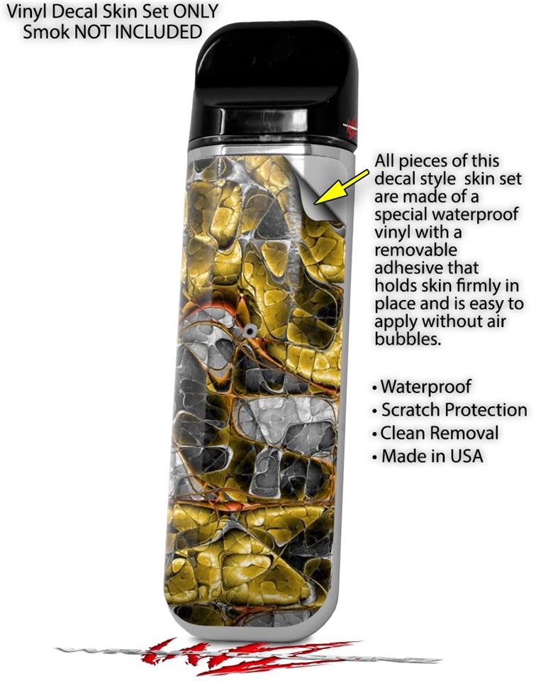 WraptorSkinz® skin wraps are printed using superb photo quality designs and vibrant colors printed with special fade resistant inks that last even in direct sun for years. WraptorSkinz are a composite of two layers of commercial grade materials. The bottom layer is a soft, flexible vinyl with a special removable adhesive that is easily positioned, applied without air bubbles. Next we print the bottom layer with UV protected, fade resistant inks that deliver superb photo quality designs in vibrant colors. Last, we bond a professional grade laminate over the entire skin adding a glossy protective finish. This product is not affiliated with or endorsed by the Smok brand.