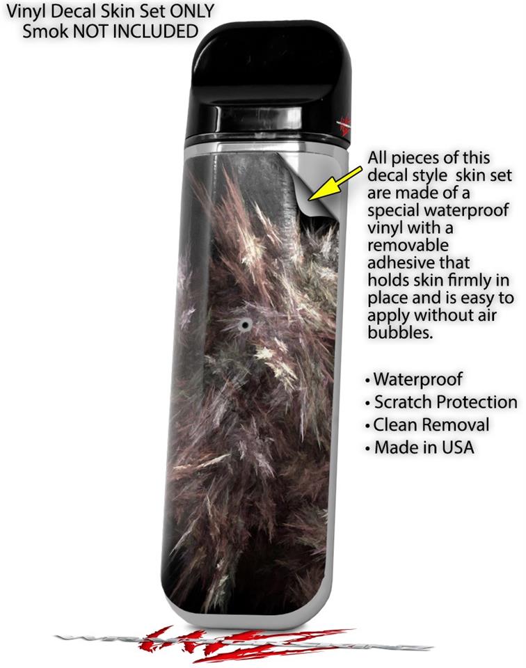 WraptorSkinz® skin wraps are printed using superb photo quality designs and vibrant colors printed with special fade resistant inks that last even in direct sun for years. WraptorSkinz are a composite of two layers of commercial grade materials. The bottom layer is a soft, flexible vinyl with a special removable adhesive that is easily positioned, applied without air bubbles. Next we print the bottom layer with UV protected, fade resistant inks that deliver superb photo quality designs in vibrant colors. Last, we bond a professional grade laminate over the entire skin adding a glossy protective finish. This product is not affiliated with or endorsed by the Smok brand.