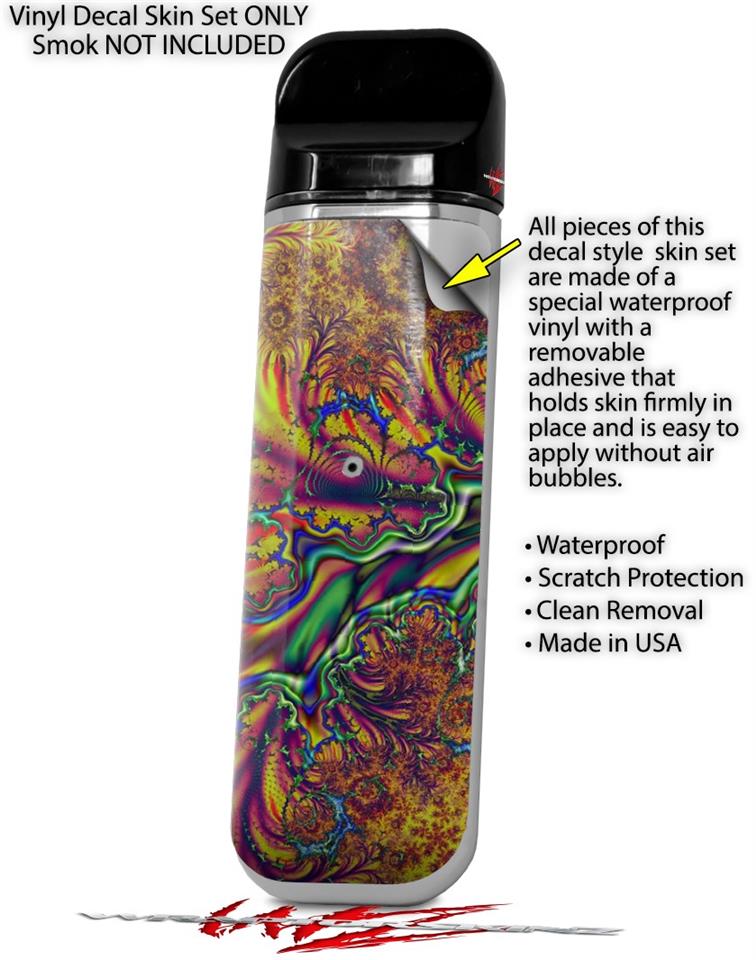 WraptorSkinz® skin wraps are printed using superb photo quality designs and vibrant colors printed with special fade resistant inks that last even in direct sun for years. WraptorSkinz are a composite of two layers of commercial grade materials. The bottom layer is a soft, flexible vinyl with a special removable adhesive that is easily positioned, applied without air bubbles. Next we print the bottom layer with UV protected, fade resistant inks that deliver superb photo quality designs in vibrant colors. Last, we bond a professional grade laminate over the entire skin adding a glossy protective finish. This product is not affiliated with or endorsed by the Smok brand.