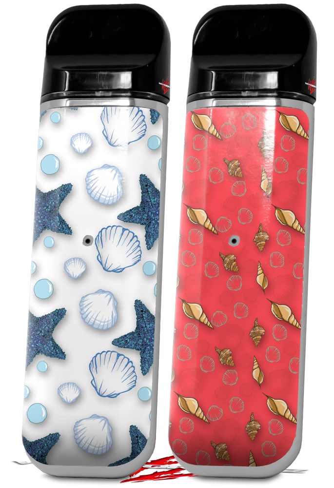 Skin Decal Wrap 2 Pack for Smok Novo v1 Starfish and Sea Shells White VAPE NOT INCLUDED