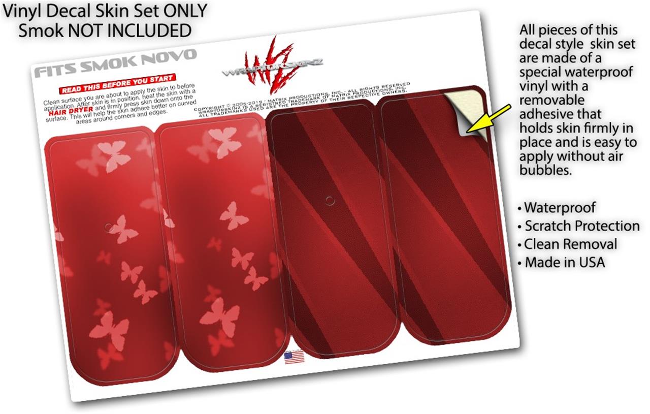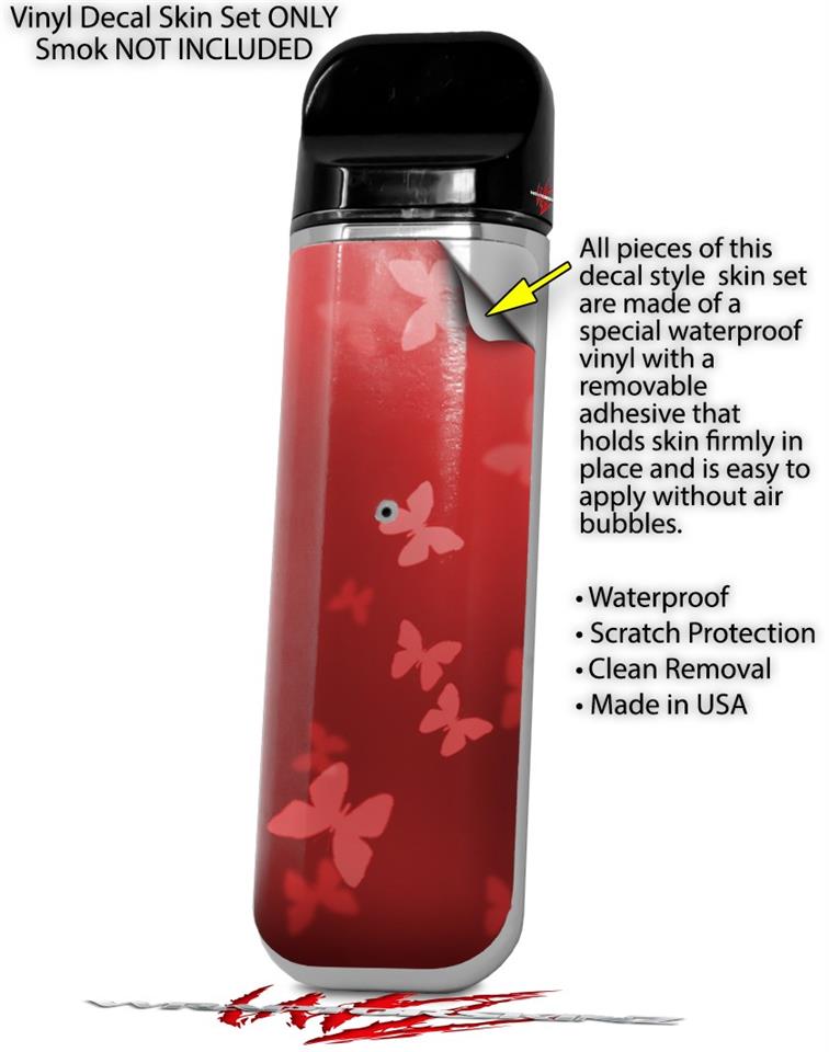 Skin Decal Wrap 2 Pack for Smok Novo v1 Bokeh Butterflies Red VAPE NOT INCLUDED
