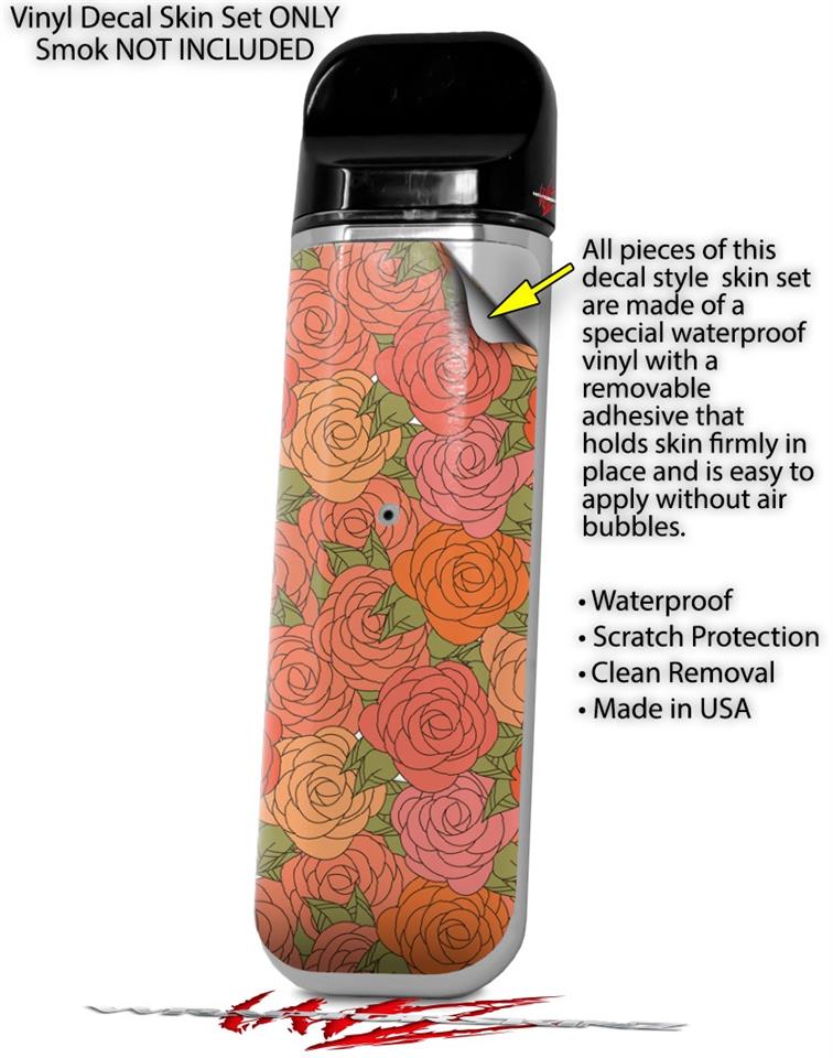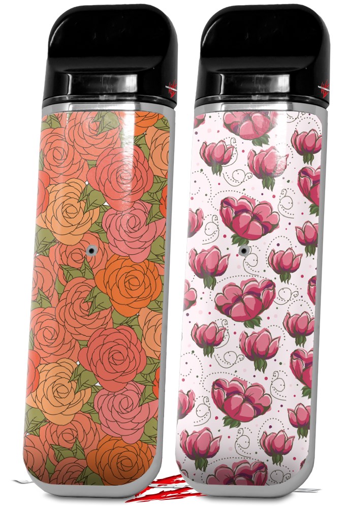 Skin Decal Wrap 2 Pack for Smok Novo v1 Flowers Pattern Roses 06 VAPE NOT INCLUDED