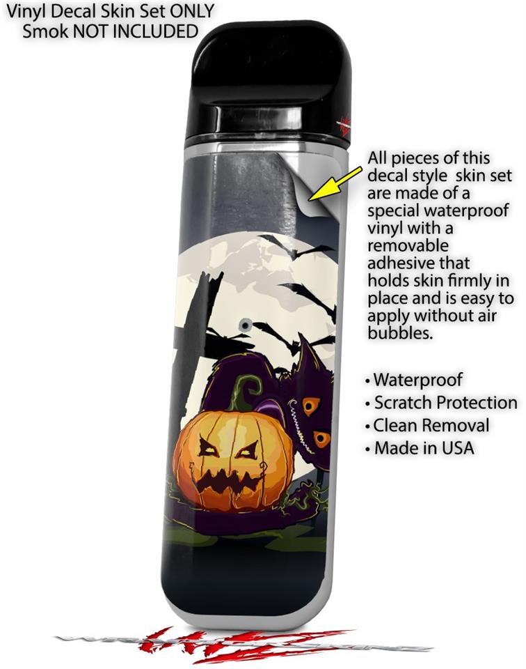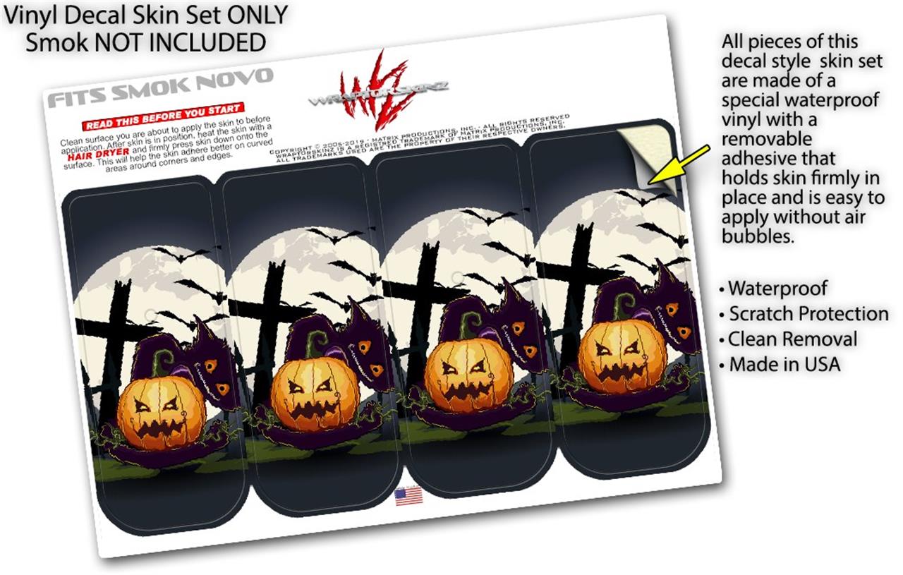 Skin Decal Wrap 2 Pack for Smok Novo v1 Halloween Jack O Lantern and Cemetery Kitty Cat VAPE NOT INCLUDED