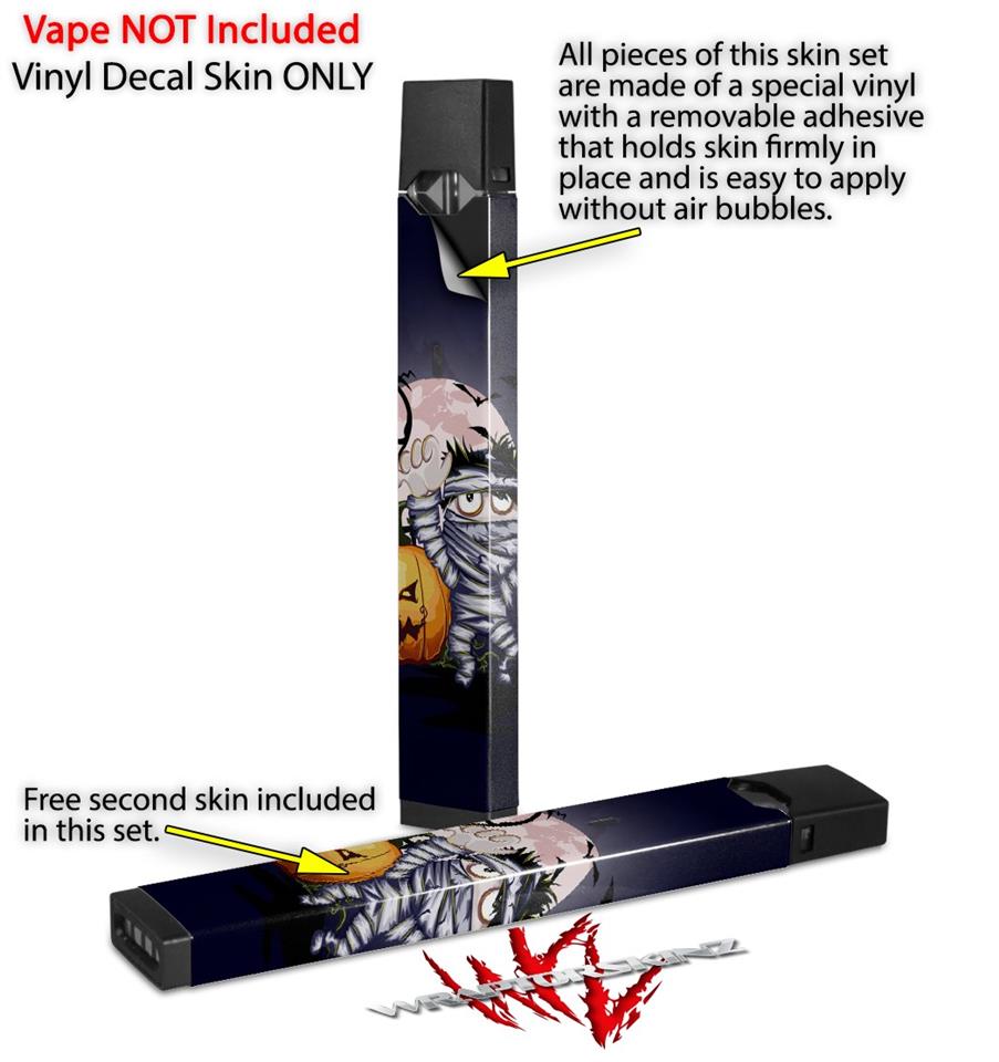 Skin Decal Wrap 2 Pack compatible with Juul Vapes Halloween Jack O Lantern Pumpkin Bats and Zombie Mummy JUUL NOT INCLUDED