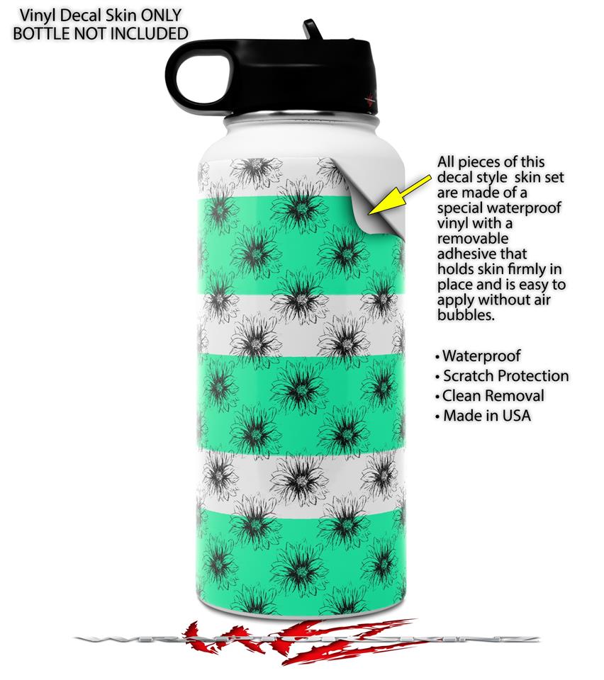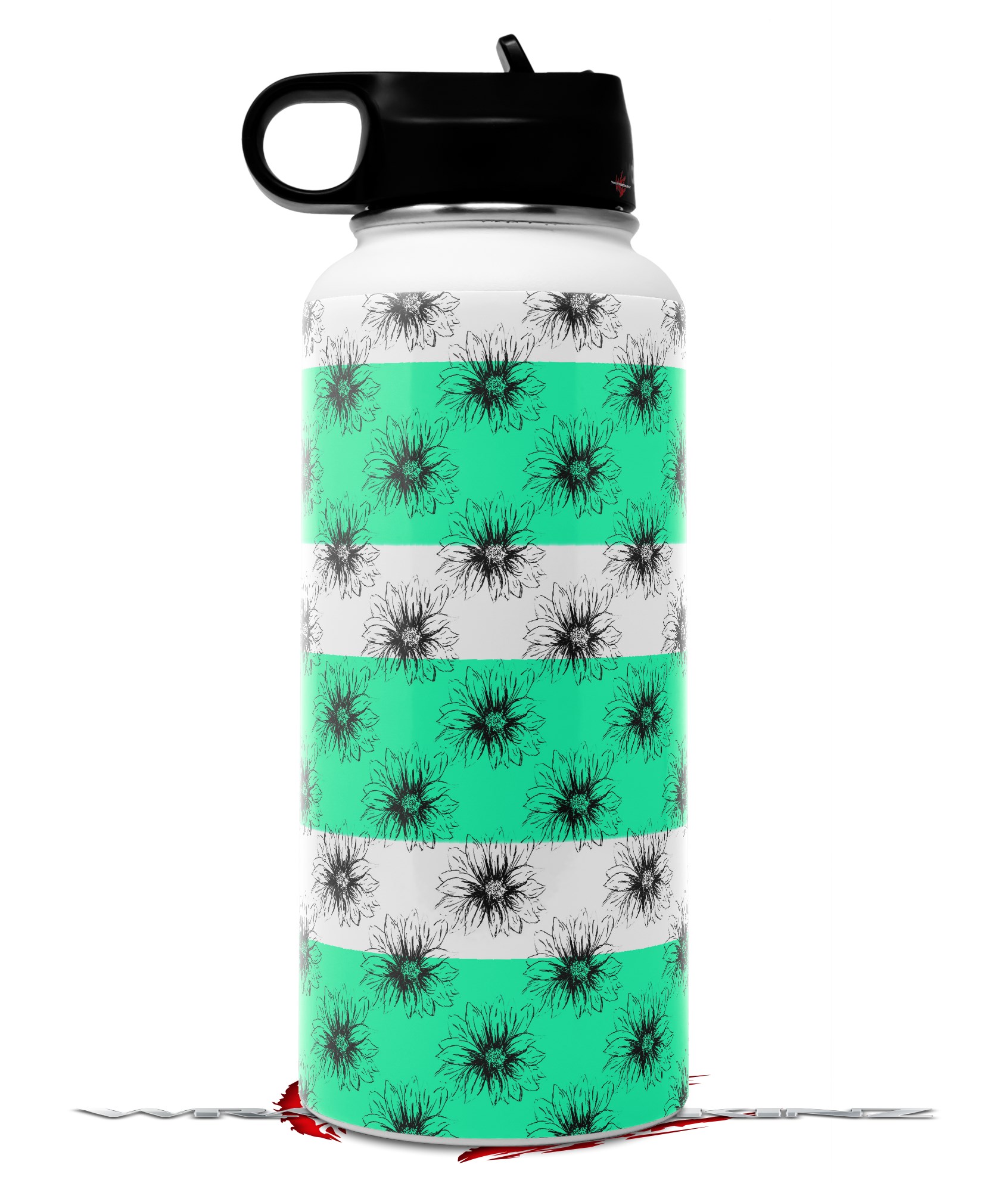 Skin Wrap Decal compatible with Hydro Flask Wide Mouth Bottle 32oz Kearas Daisies Stripe SeaFoam (BOTTLE NOT INCLUDED)