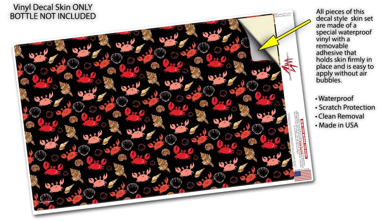 Skin Wrap Decal compatible with Hydro Flask Wide Mouth Bottle 32oz Crabs and Shells Black (BOTTLE NOT INCLUDED)