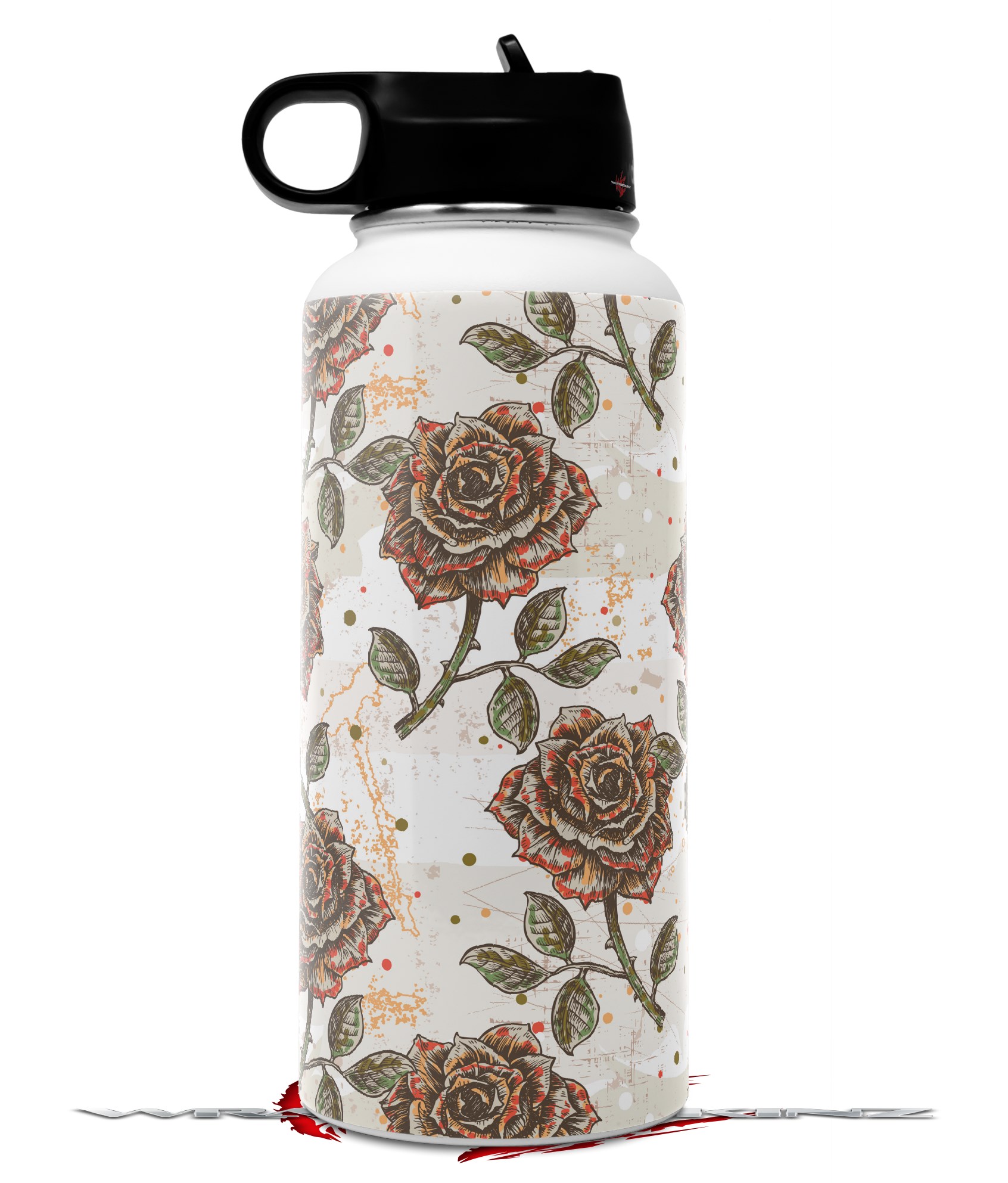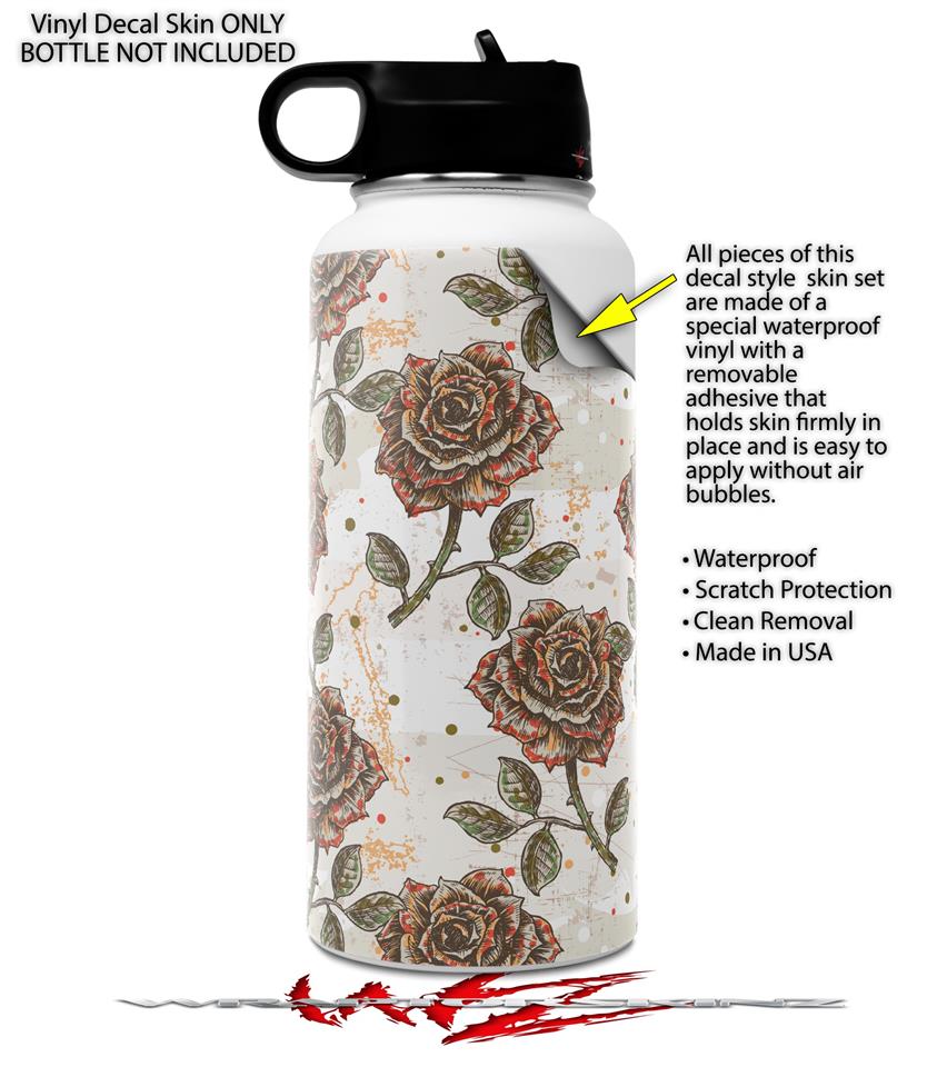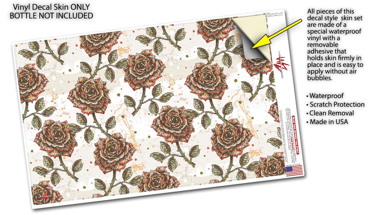 Skin Wrap Decal compatible with Hydro Flask Wide Mouth Bottle 32oz Flowers Pattern Roses 20 (BOTTLE NOT INCLUDED)