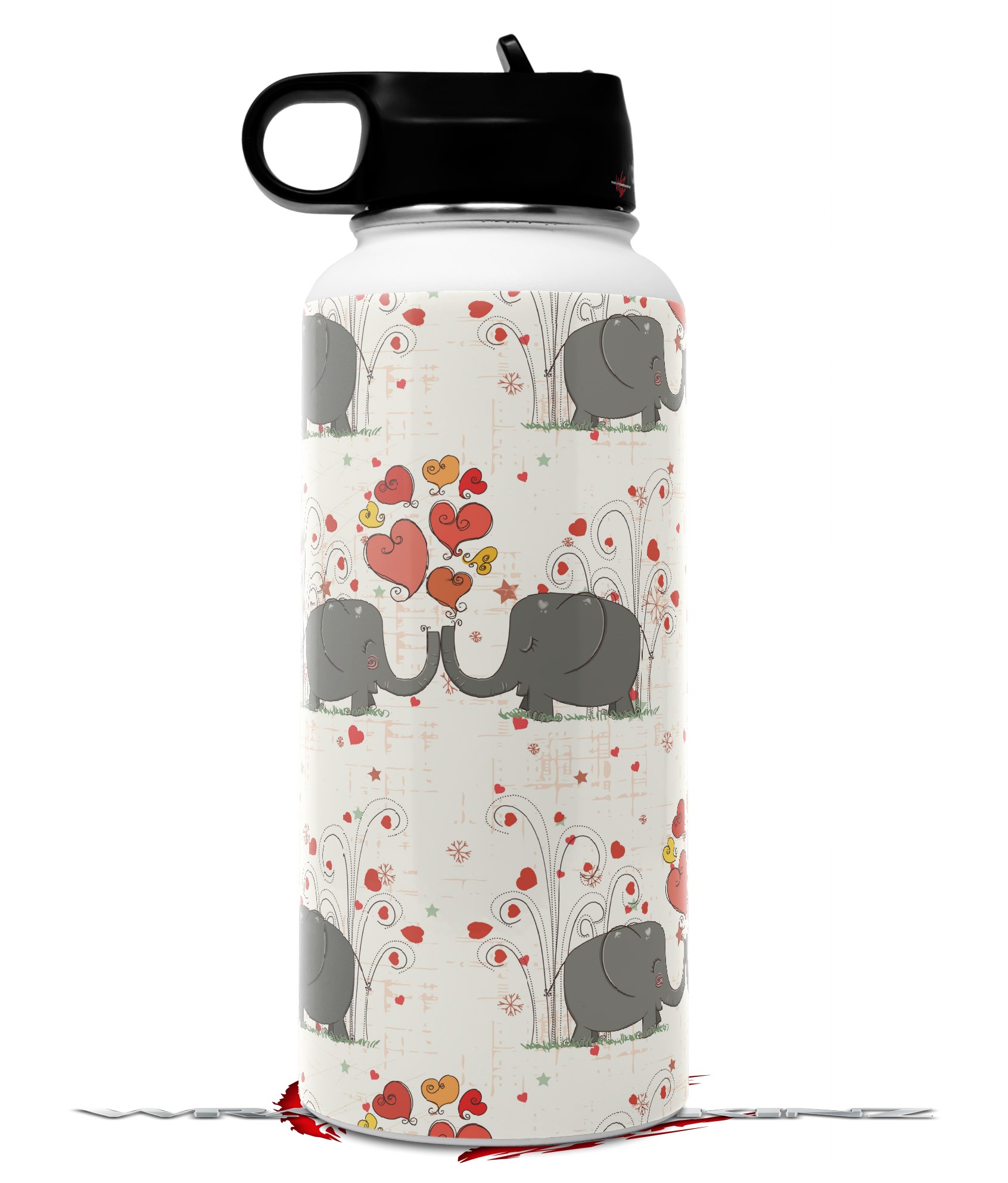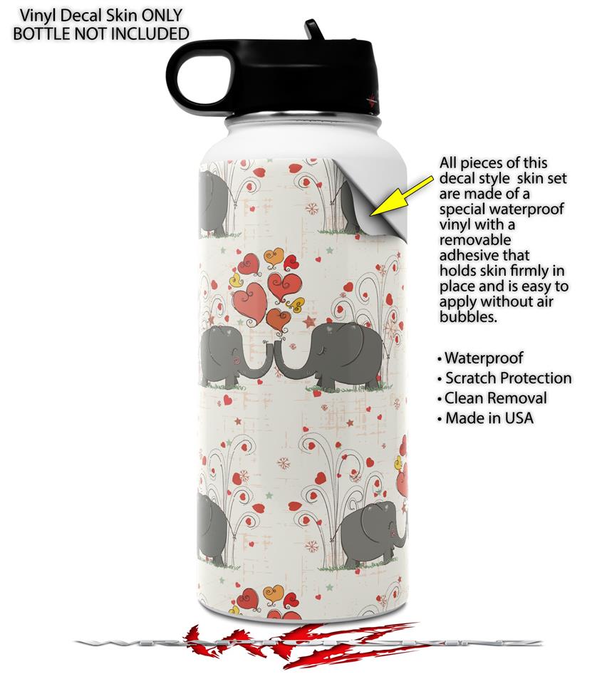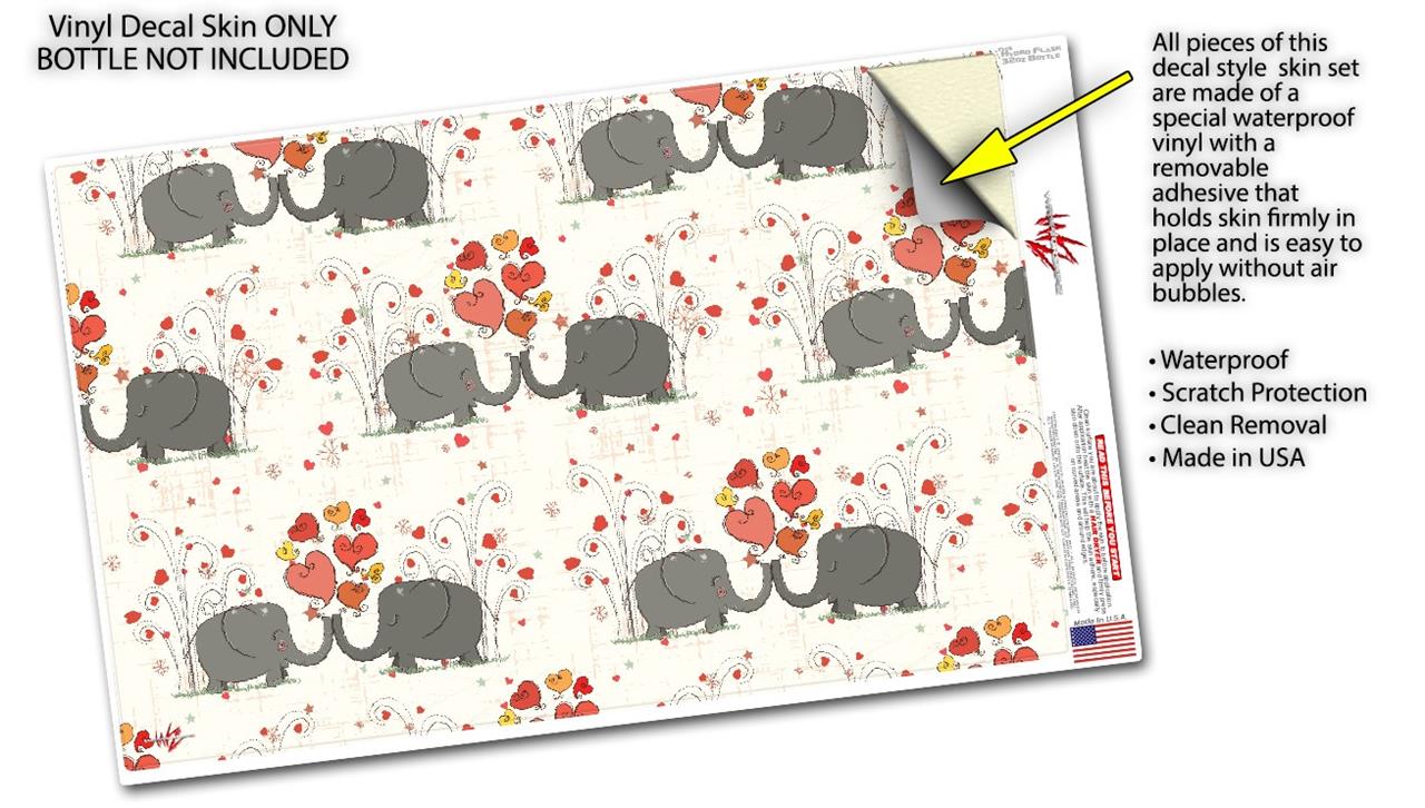 Skin Wrap Decal compatible with Hydro Flask Wide Mouth Bottle 32oz Elephant Love (BOTTLE NOT INCLUDED)