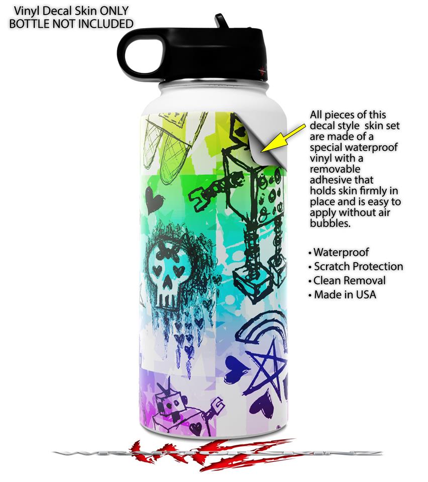 Skin Wrap Decal compatible with Hydro Flask Wide Mouth Bottle 32oz Scene Kid Sketches Rainbow (BOTTLE NOT INCLUDED)