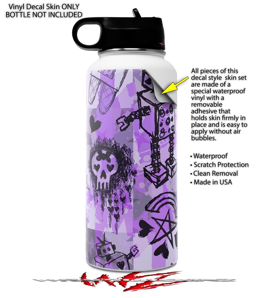 Skin Wrap Decal compatible with Hydro Flask Wide Mouth Bottle 32oz Scene Kid Sketches Purple (BOTTLE NOT INCLUDED)