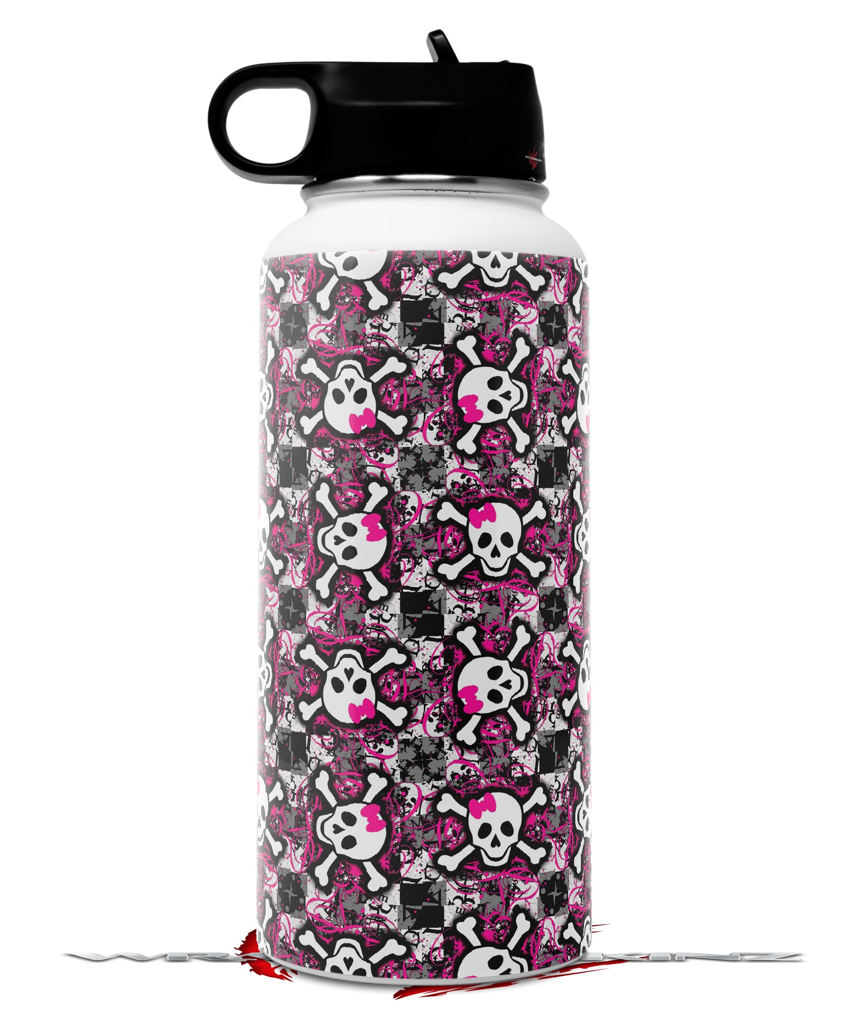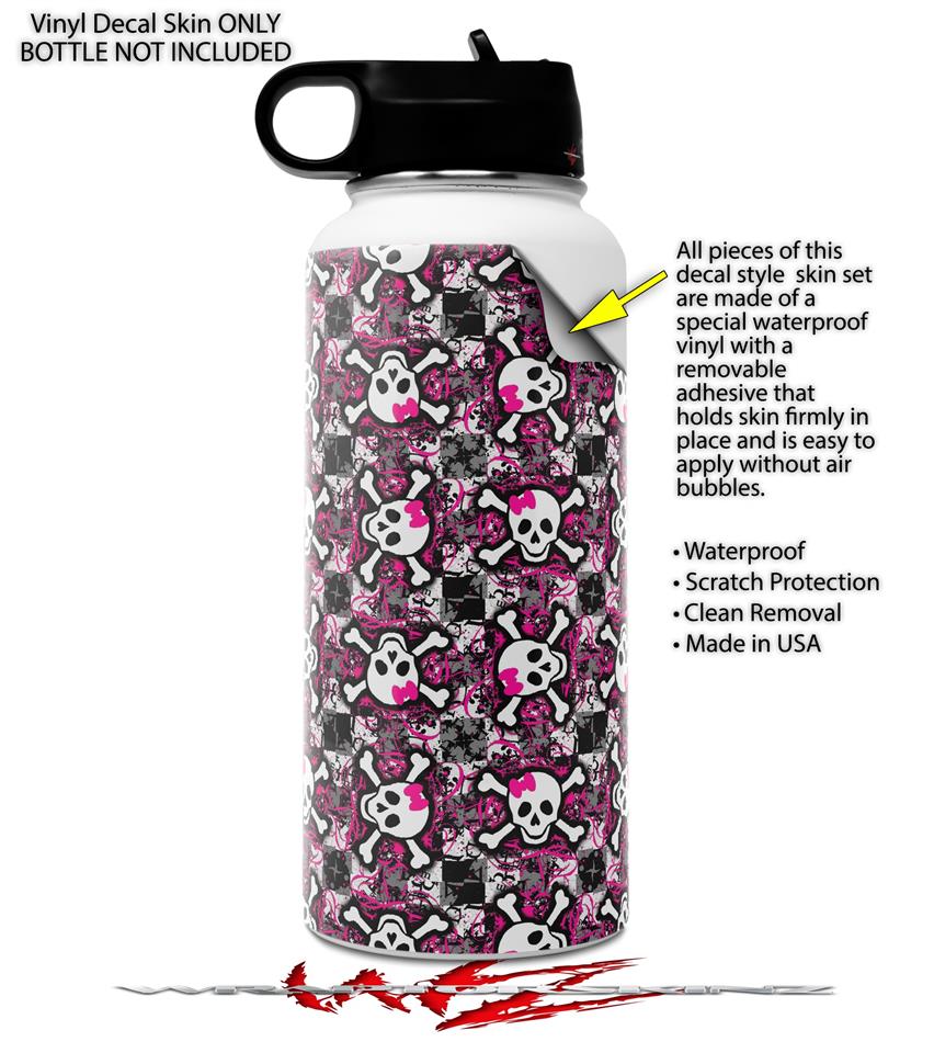 Skin Wrap Decal compatible with Hydro Flask Wide Mouth Bottle 32oz Splatter Girly Skull Pink (BOTTLE NOT INCLUDED)