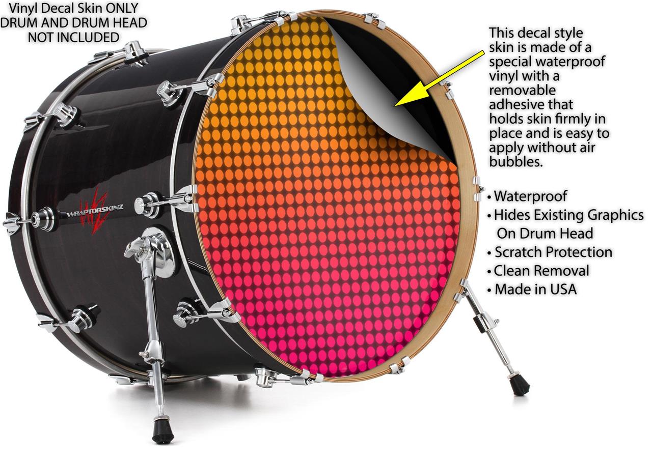 Vinyl Decal Skin Wrap for 22" Bass Kick Drum Head Faded Dots Hot Pink Orange - DRUM HEAD NOT INCLUDED