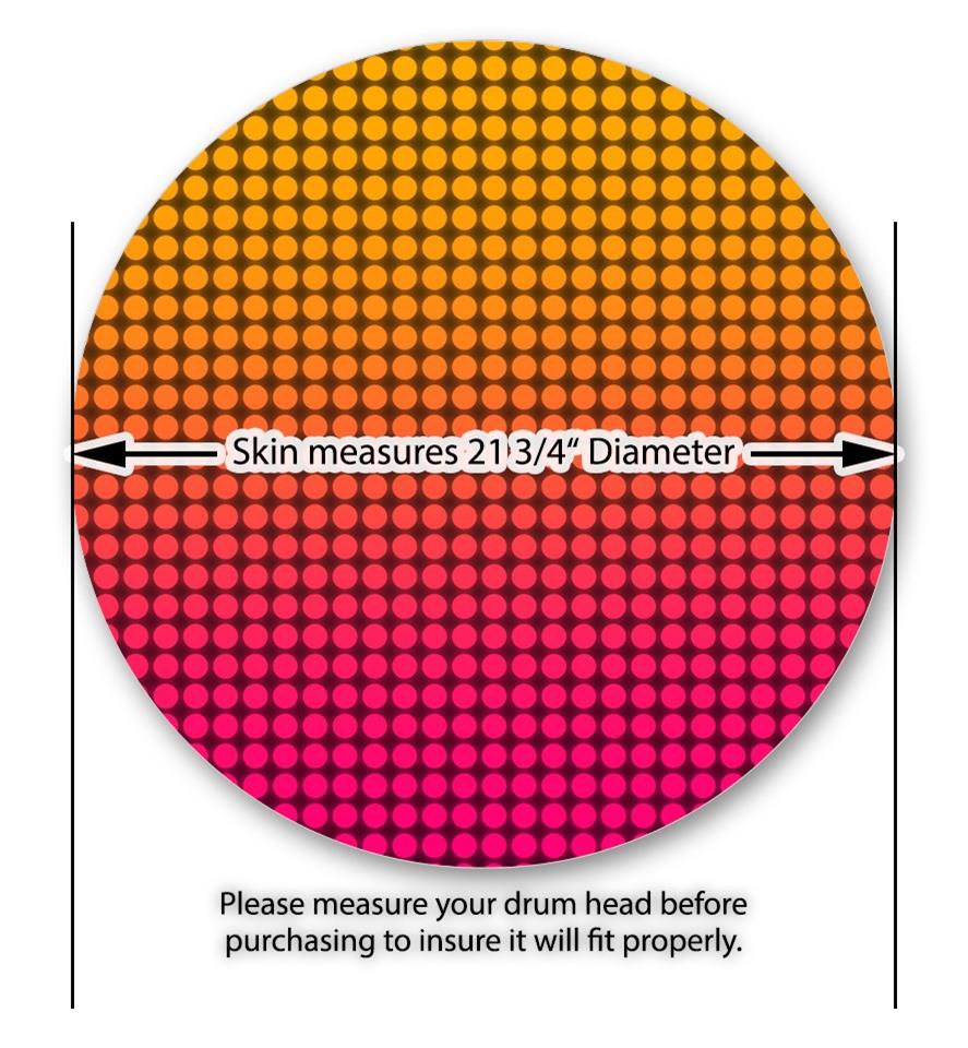 This design also available in other sizes. WraptorSkinz® skin wraps compatible with most kick drum heads. Printed using superb photo quality designs and vibrant colors printed with special fade resistant inks that last even in direct sun for years. WraptorSkinz are a composite three layer commercial grade materials vinyl. The bottom layer is a air release, grey block out removable adhesive that hides existing graphics on the drum head and is easily applied without air bubbles. The middle layer is a flexible vinyl printed with UV protected, fade resistant inks that deliver superb photo quality designs in vibrant colors. Finally, we bond a professional grade laminate over the entire skin adding a glossy protective finish.