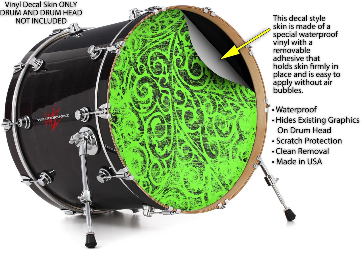 Vinyl Decal Skin Wrap for 22" Bass Kick Drum Head Folder Doodles Neon Green - DRUM HEAD NOT INCLUDED