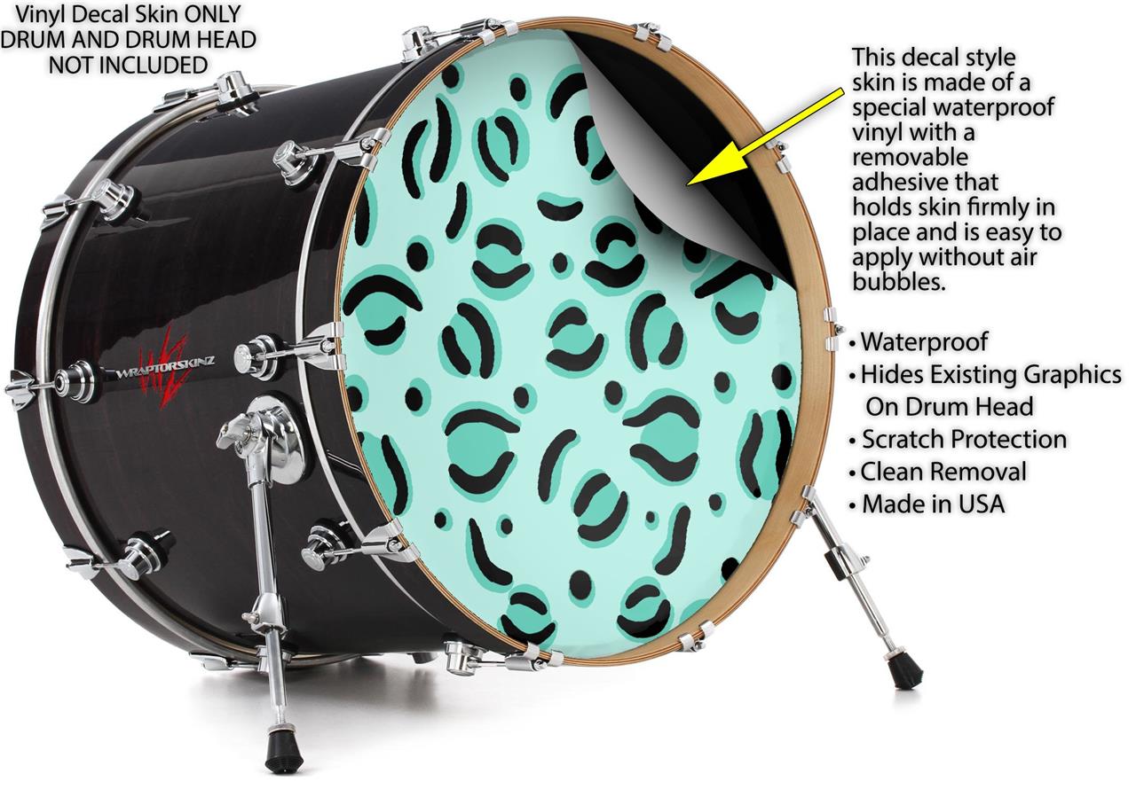 Vinyl Decal Skin Wrap for 22" Bass Kick Drum Head Teal Cheetah - DRUM HEAD NOT INCLUDED