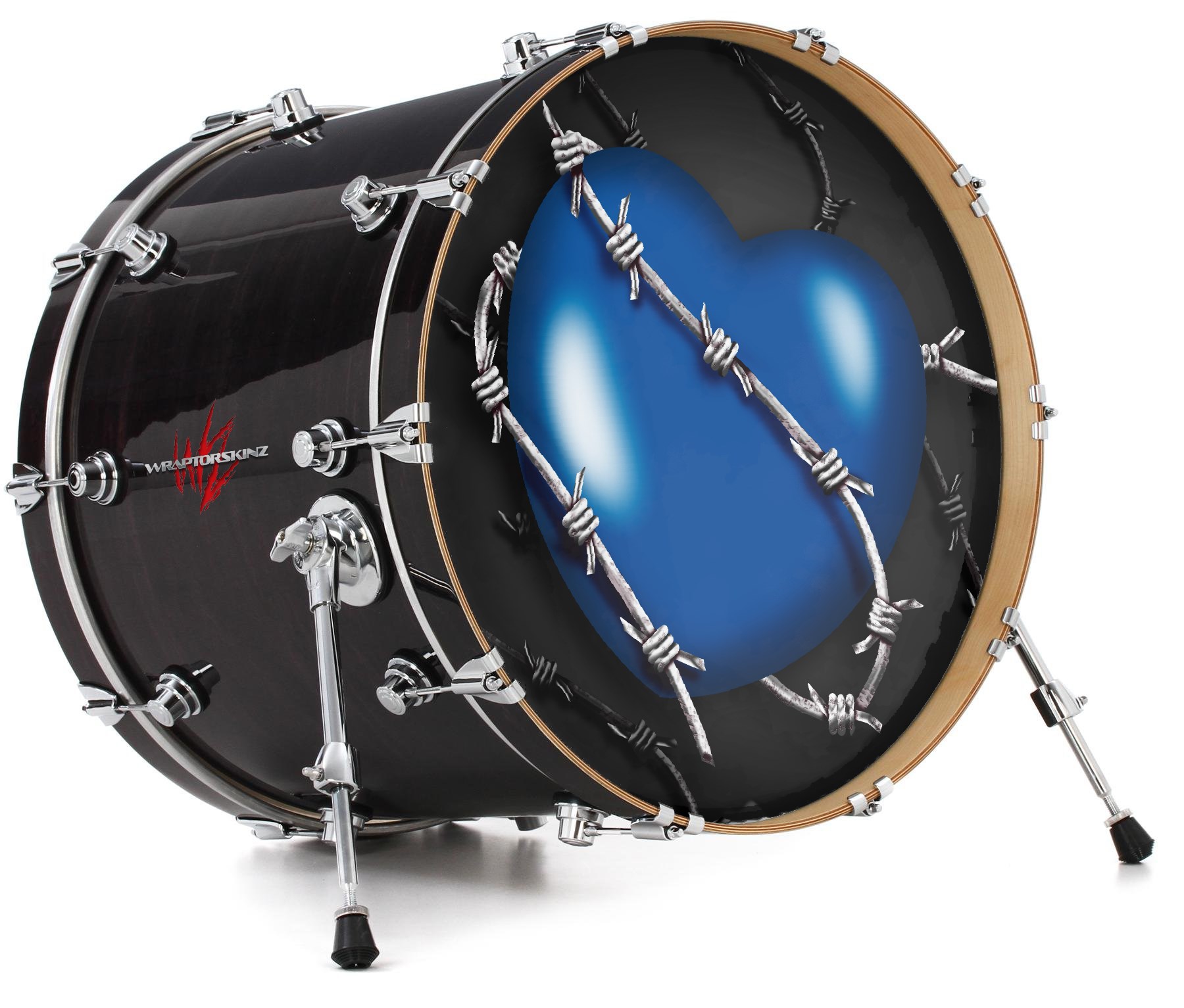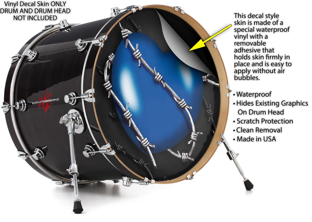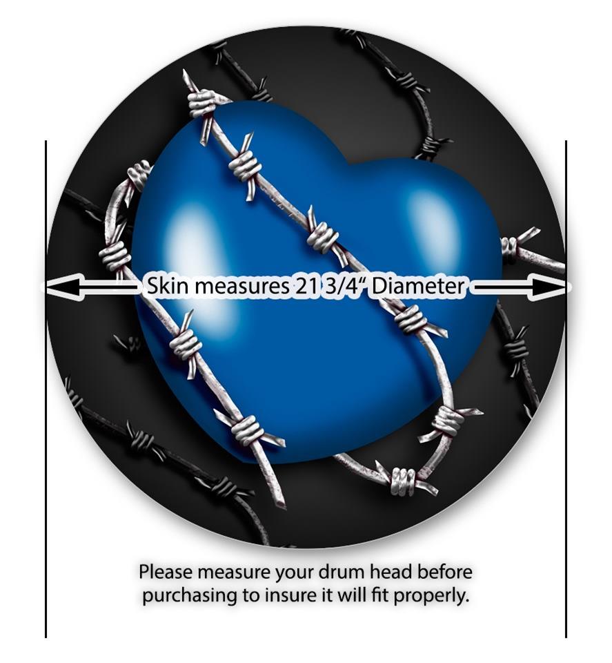 Vinyl Decal Skin Wrap for 22" Bass Kick Drum Head Barbwire Heart Blue - DRUM HEAD NOT INCLUDED