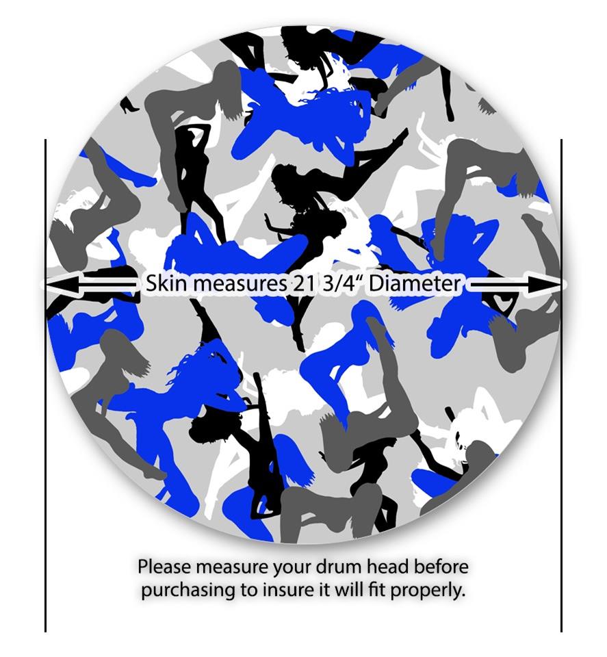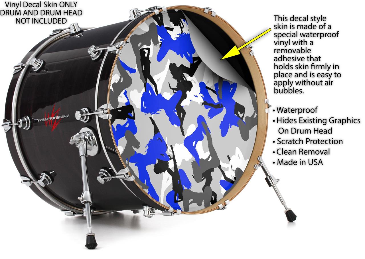 Vinyl Decal Skin Wrap for 22" Bass Kick Drum Head Sexy Girl Silhouette Camo Blue - DRUM HEAD NOT INCLUDED
