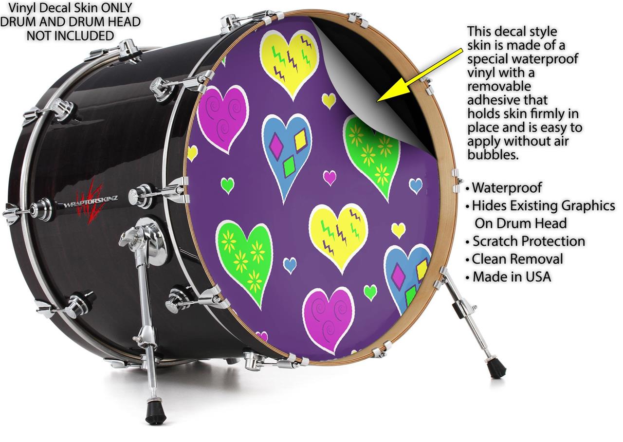 Vinyl Decal Skin Wrap for 22" Bass Kick Drum Head Crazy Hearts - DRUM HEAD NOT INCLUDED