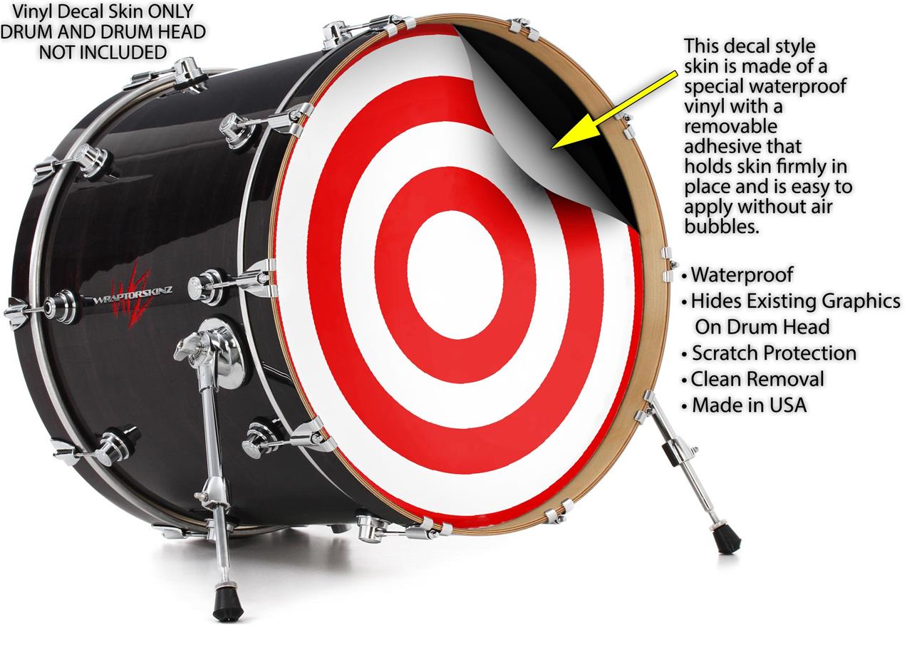 Vinyl Decal Skin Wrap for 22" Bass Kick Drum Head Bullseye Red and White - DRUM HEAD NOT INCLUDED