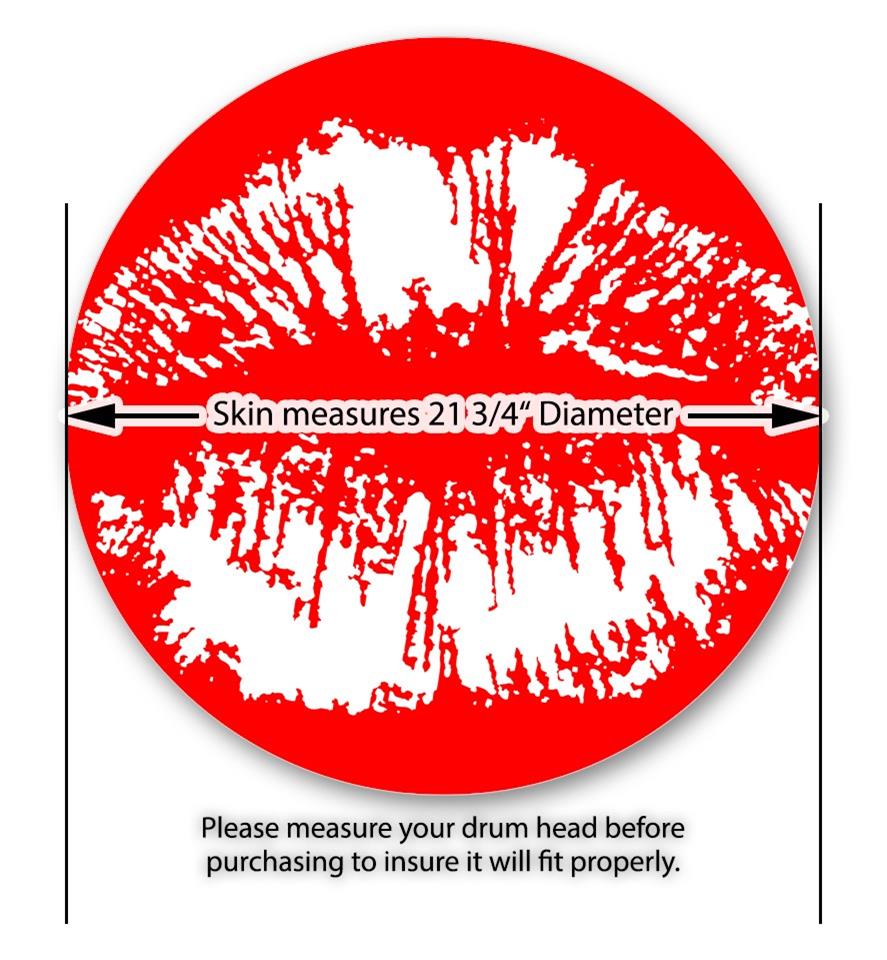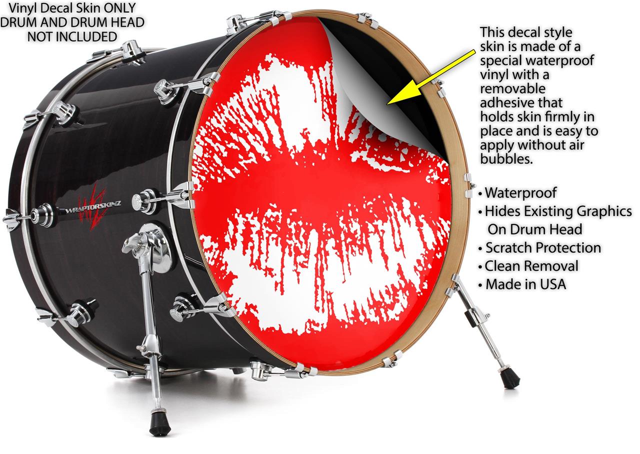Vinyl Decal Skin Wrap for 22" Bass Kick Drum Head Big Kiss White on Red - DRUM HEAD NOT INCLUDED