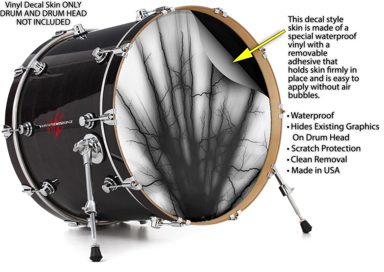Vinyl Decal Skin Wrap for 22" Bass Kick Drum Head Lightning Black - DRUM HEAD NOT INCLUDED