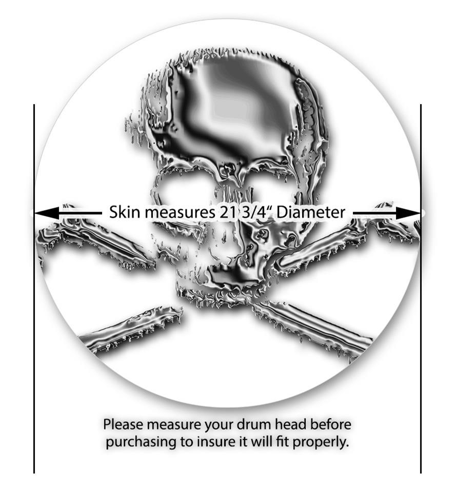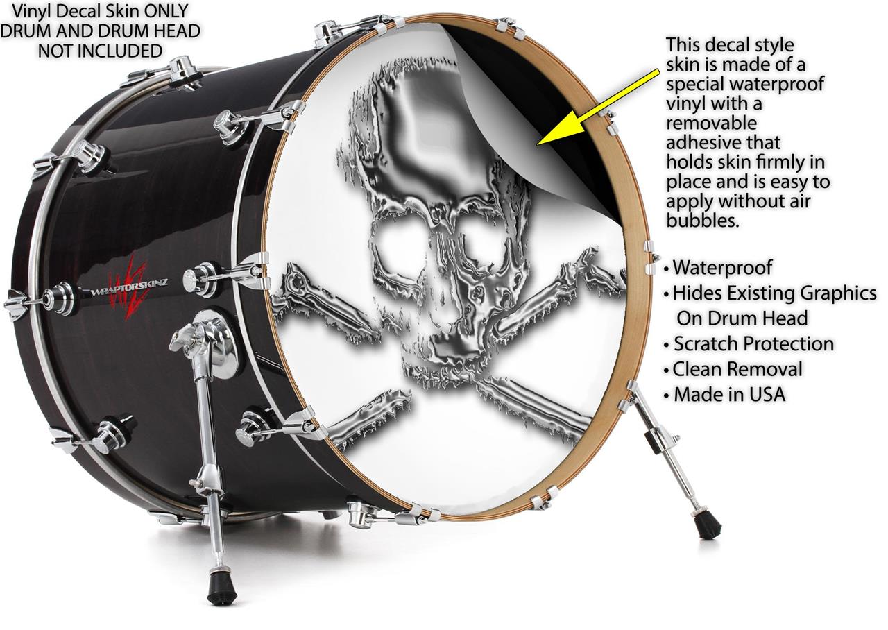 Vinyl Decal Skin Wrap for 22" Bass Kick Drum Head Chrome Skull on White - DRUM HEAD NOT INCLUDED