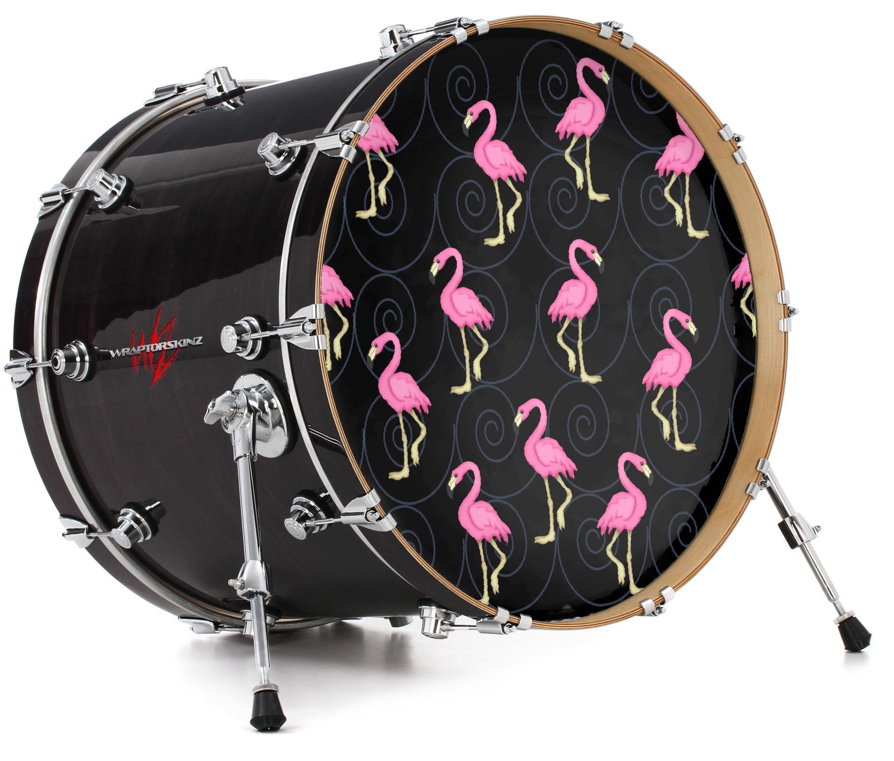 Vinyl Decal Skin Wrap for 22" Bass Kick Drum Head Flamingos on Black - DRUM HEAD NOT INCLUDED