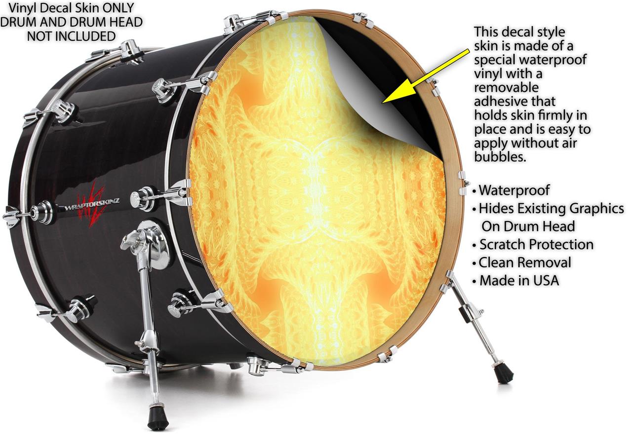 This design also available in other sizes. WraptorSkinz® skin wraps compatible with most kick drum heads. Printed using superb photo quality designs and vibrant colors printed with special fade resistant inks that last even in direct sun for years. WraptorSkinz are a composite three layer commercial grade materials vinyl. The bottom layer is a air release, grey block out removable adhesive that hides existing graphics on the drum head and is easily applied without air bubbles. The middle layer is a flexible vinyl printed with UV protected, fade resistant inks that deliver superb photo quality designs in vibrant colors. Finally, we bond a professional grade laminate over the entire skin adding a glossy protective finish.
