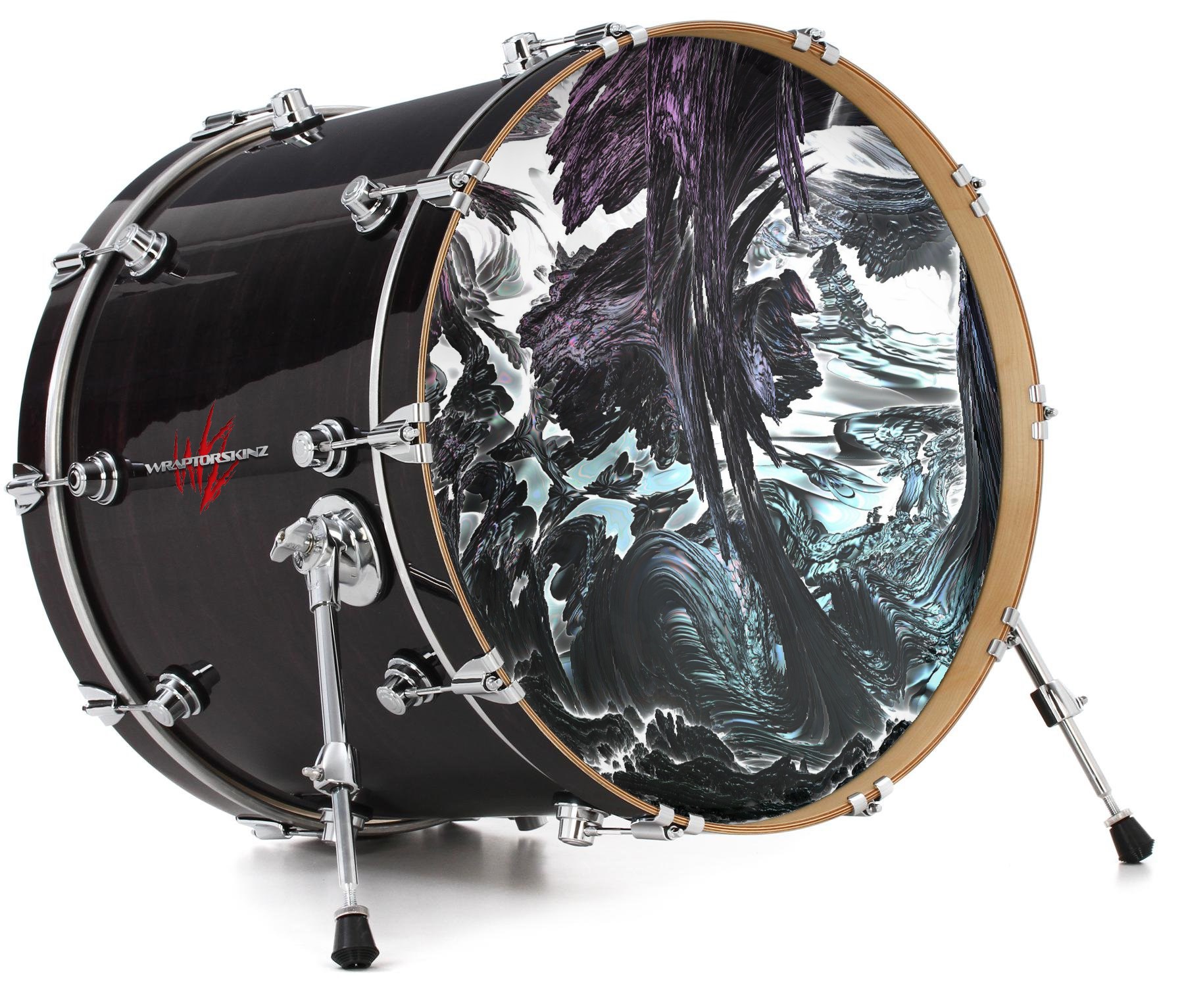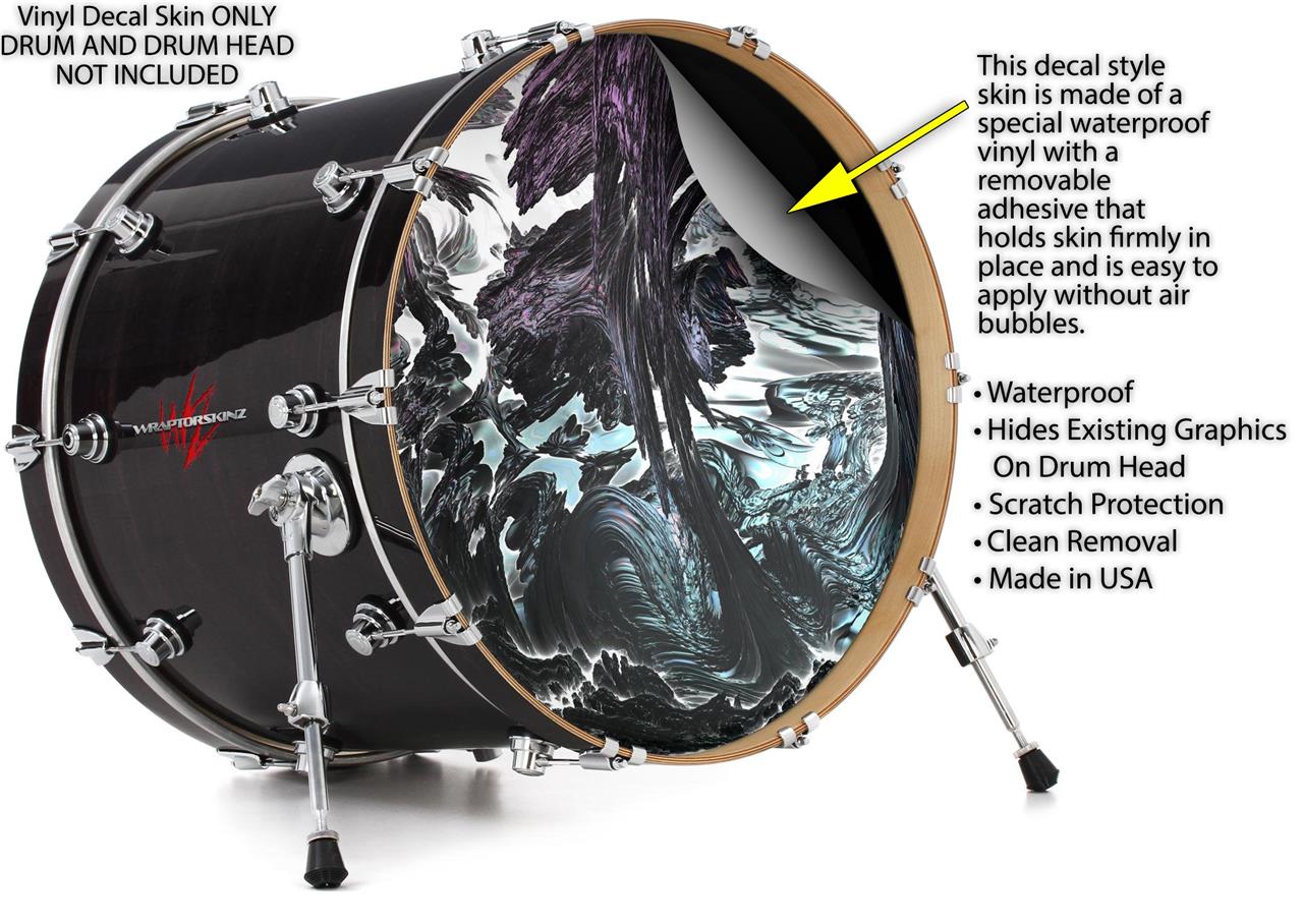 This design also available in other sizes. WraptorSkinz® skin wraps compatible with most kick drum heads. Printed using superb photo quality designs and vibrant colors printed with special fade resistant inks that last even in direct sun for years. WraptorSkinz are a composite three layer commercial grade materials vinyl. The bottom layer is a air release, grey block out removable adhesive that hides existing graphics on the drum head and is easily applied without air bubbles. The middle layer is a flexible vinyl printed with UV protected, fade resistant inks that deliver superb photo quality designs in vibrant colors. Finally, we bond a professional grade laminate over the entire skin adding a glossy protective finish.