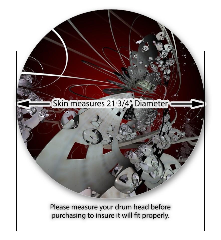 This design also available in other sizes. WraptorSkinz® skin wraps compatible with most kick drum heads. Printed using superb photo quality designs and vibrant colors printed with special fade resistant inks that last even in direct sun for years. WraptorSkinz are a composite three layer commercial grade materials vinyl. The bottom layer is a air release, grey block out removable adhesive that hides existing graphics on the drum head and is easily applied without air bubbles. The middle layer is a flexible vinyl printed with UV protected, fade resistant inks that deliver superb photo quality designs in vibrant colors. Finally, we bond a professional grade laminate over the entire skin adding a glossy protective finish.