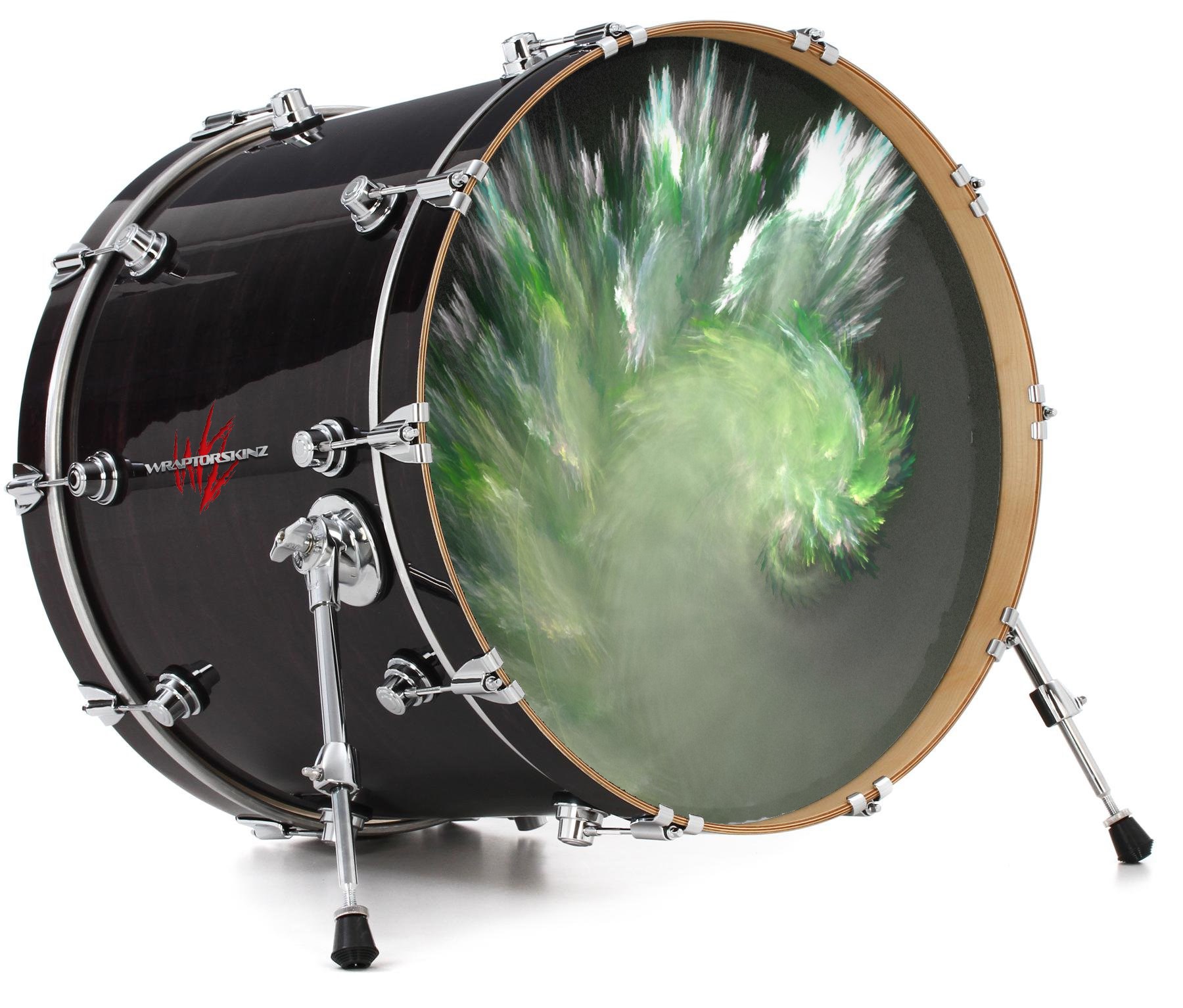 This design also available in other sizes. WraptorSkinz® skin wraps compatible with most kick drum heads. Printed using superb photo quality designs and vibrant colors printed with special fade resistant inks that last even in direct sun for years. WraptorSkinz are a composite three layer commercial grade materials vinyl. The bottom layer is a air release, grey block out removable adhesive that hides existing graphics on the drum head and is easily applied without air bubbles. The middle layer is a flexible vinyl printed with UV protected, fade resistant inks that deliver superb photo quality designs in vibrant colors. Finally, we bond a professional grade laminate over the entire skin adding a glossy protective finish.