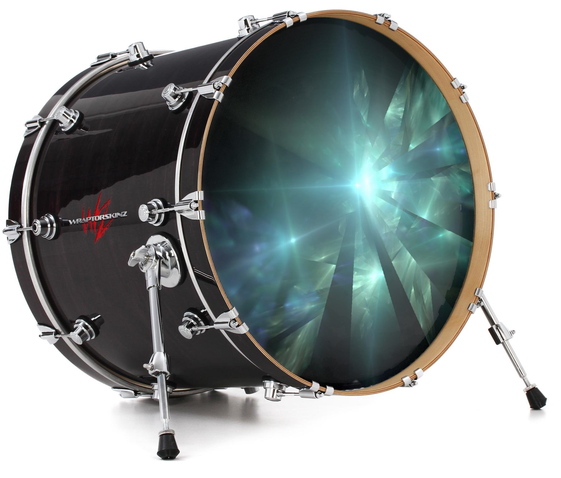 This design also available in other sizes. WraptorSkinz® skin wraps compatible with most kick drum heads. Printed using superb photo quality designs and vibrant colors printed with special fade resistant inks that last even in direct sun for years. WraptorSkinz are a composite three layer commercial grade materials vinyl. The bottom layer is a air release, grey block out removable adhesive that hides existing graphics on the drum head and is easily applied without air bubbles. The middle layer is a flexible vinyl printed with UV protected, fade resistant inks that deliver superb photo quality designs in vibrant colors. Finally, we bond a professional grade laminate over the entire skin adding a glossy protective finish.