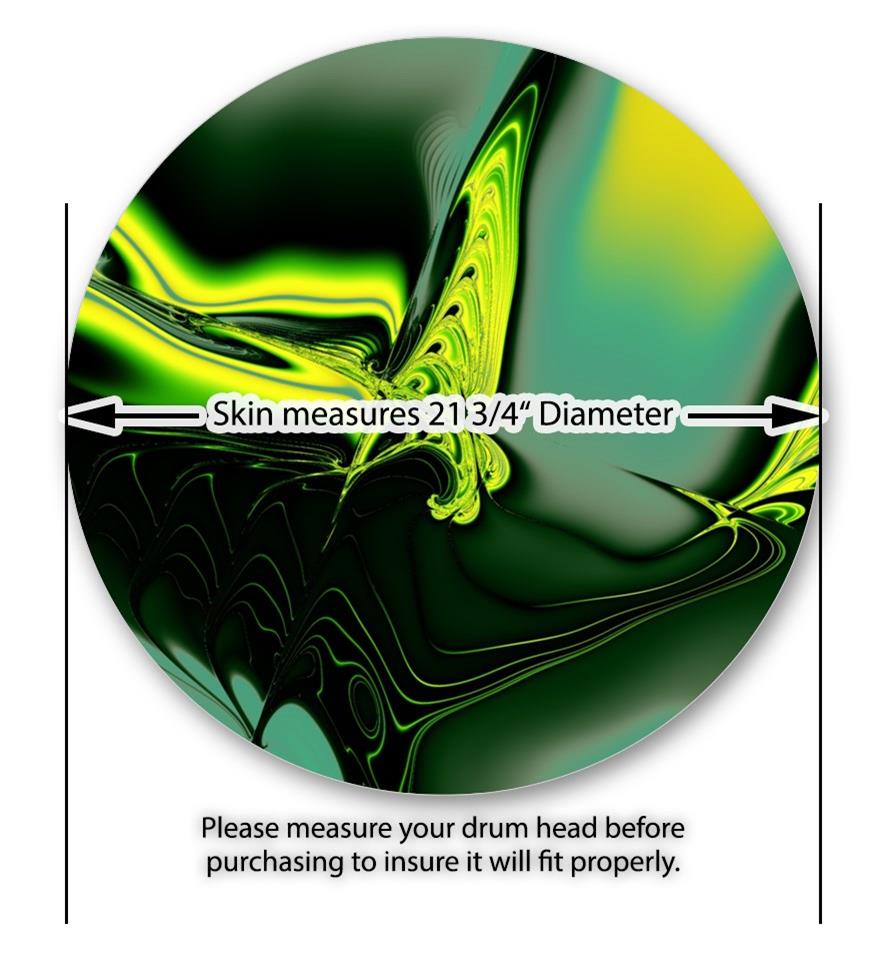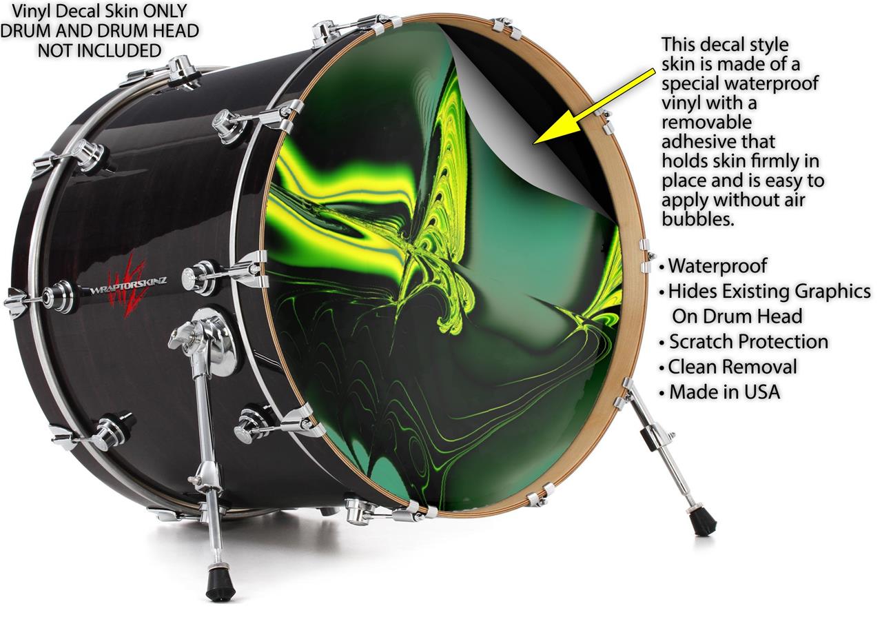This design also available in other sizes. WraptorSkinz® skin wraps compatible with most kick drum heads. Printed using superb photo quality designs and vibrant colors printed with special fade resistant inks that last even in direct sun for years. WraptorSkinz are a composite three layer commercial grade materials vinyl. The bottom layer is a air release, grey block out removable adhesive that hides existing graphics on the drum head and is easily applied without air bubbles. The middle layer is a flexible vinyl printed with UV protected, fade resistant inks that deliver superb photo quality designs in vibrant colors. Finally, we bond a professional grade laminate over the entire skin adding a glossy protective finish.