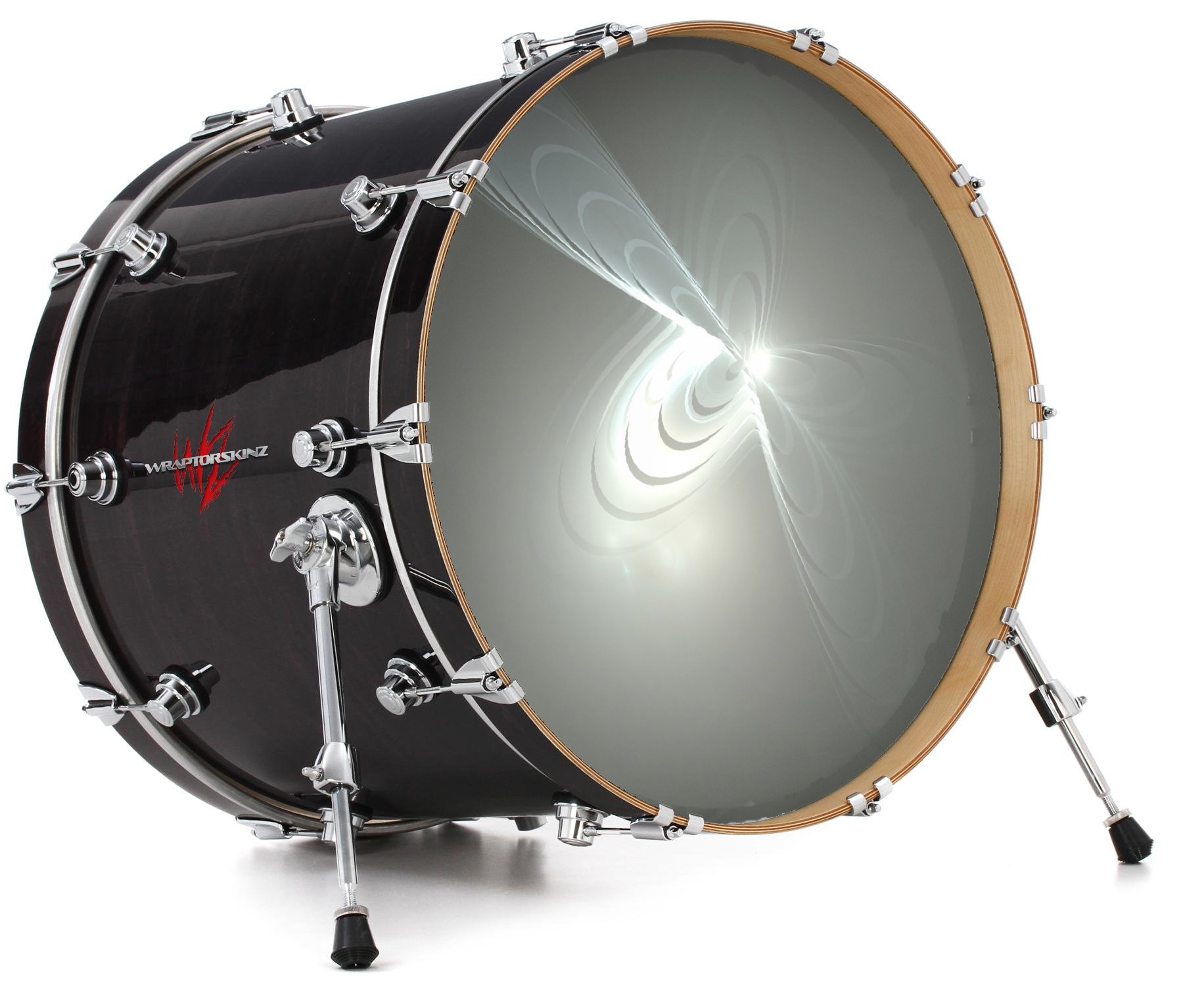 This design also available in other sizes. WraptorSkinz® skin wraps compatible with most kick drum heads. Printed using superb photo quality designs and vibrant colors printed with special fade resistant inks that last even in direct sun for years. WraptorSkinz are a composite three layer commercial grade materials vinyl. The bottom layer is a air release, grey block out removable adhesive that hides existing graphics on the drum head and is easily applied without air bubbles. The middle layer is a flexible vinyl printed with UV protected, fade resistant inks that deliver superb photo quality designs in vibrant colors. Finally, we bond a professional grade laminate over the entire skin adding a glossy protective finish.