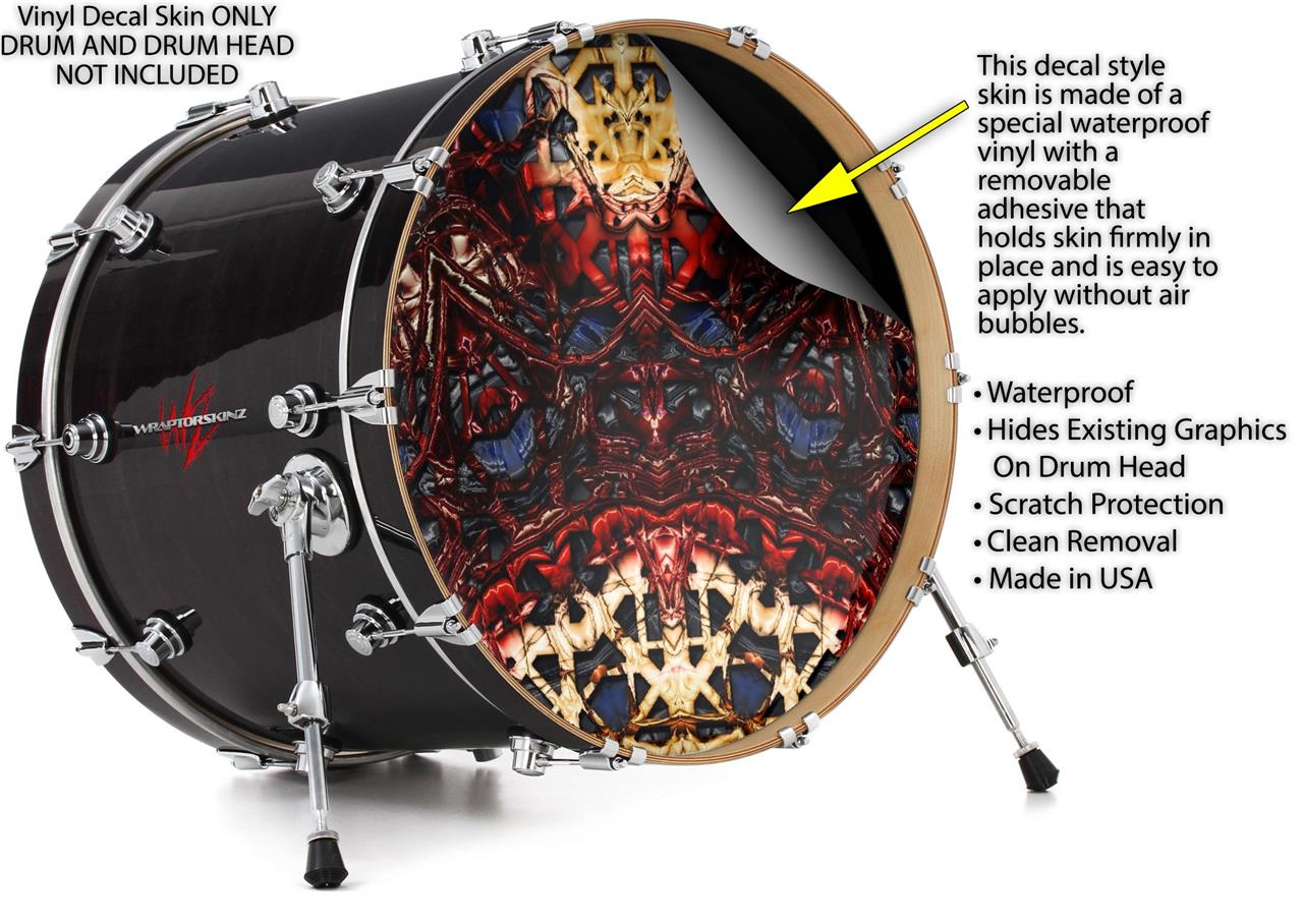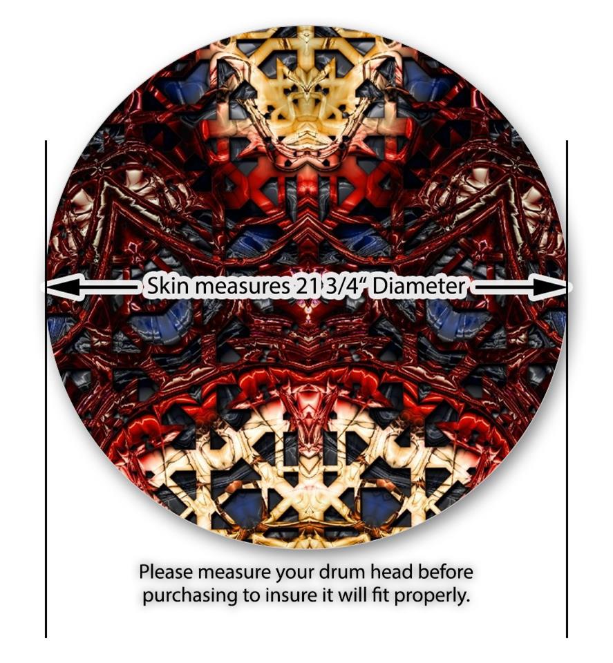This design also available in other sizes. WraptorSkinz® skin wraps compatible with most kick drum heads. Printed using superb photo quality designs and vibrant colors printed with special fade resistant inks that last even in direct sun for years. WraptorSkinz are a composite three layer commercial grade materials vinyl. The bottom layer is a air release, grey block out removable adhesive that hides existing graphics on the drum head and is easily applied without air bubbles. The middle layer is a flexible vinyl printed with UV protected, fade resistant inks that deliver superb photo quality designs in vibrant colors. Finally, we bond a professional grade laminate over the entire skin adding a glossy protective finish.