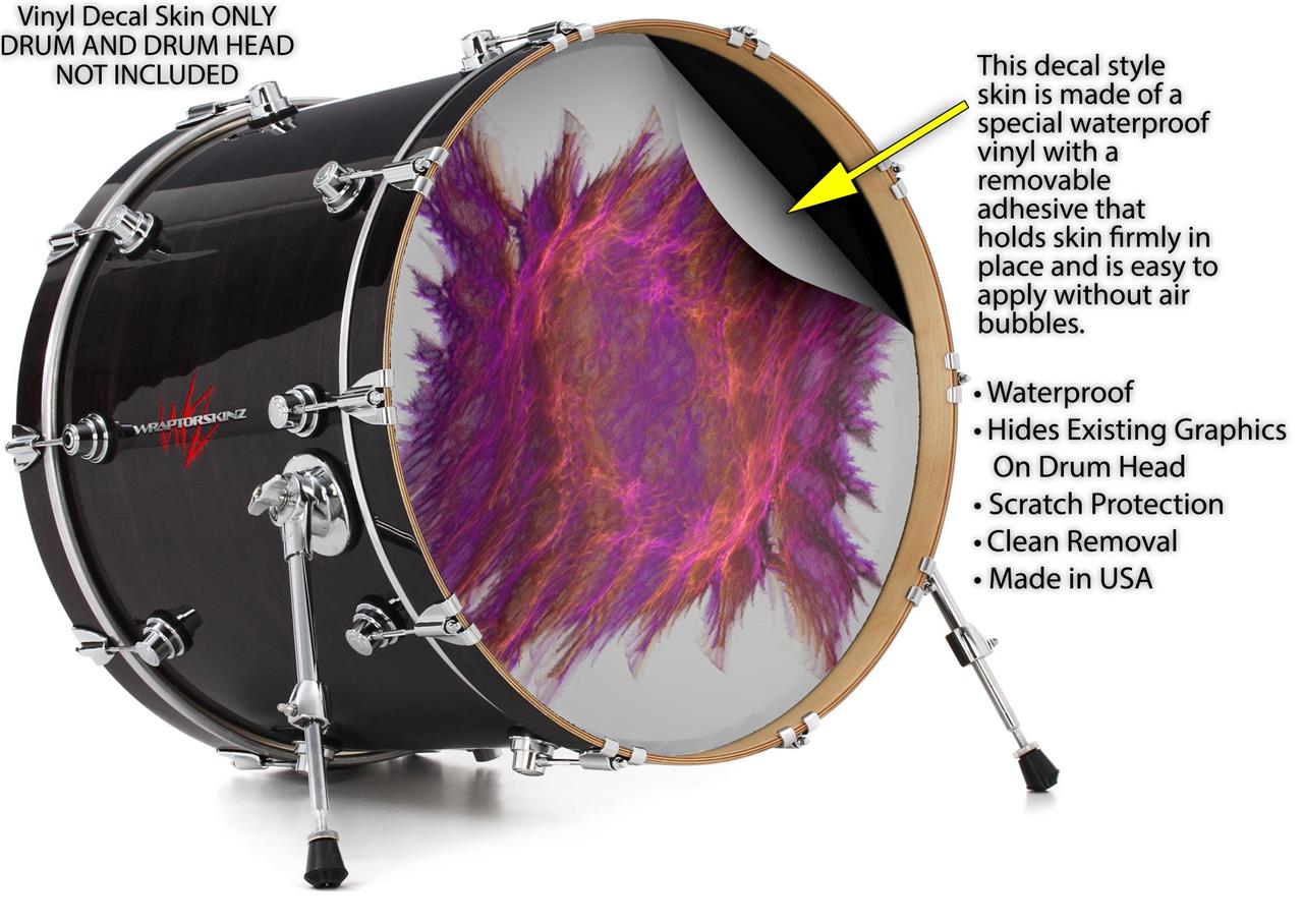 This design also available in other sizes. WraptorSkinz® skin wraps compatible with most kick drum heads. Printed using superb photo quality designs and vibrant colors printed with special fade resistant inks that last even in direct sun for years. WraptorSkinz are a composite three layer commercial grade materials vinyl. The bottom layer is a air release, grey block out removable adhesive that hides existing graphics on the drum head and is easily applied without air bubbles. The middle layer is a flexible vinyl printed with UV protected, fade resistant inks that deliver superb photo quality designs in vibrant colors. Finally, we bond a professional grade laminate over the entire skin adding a glossy protective finish.