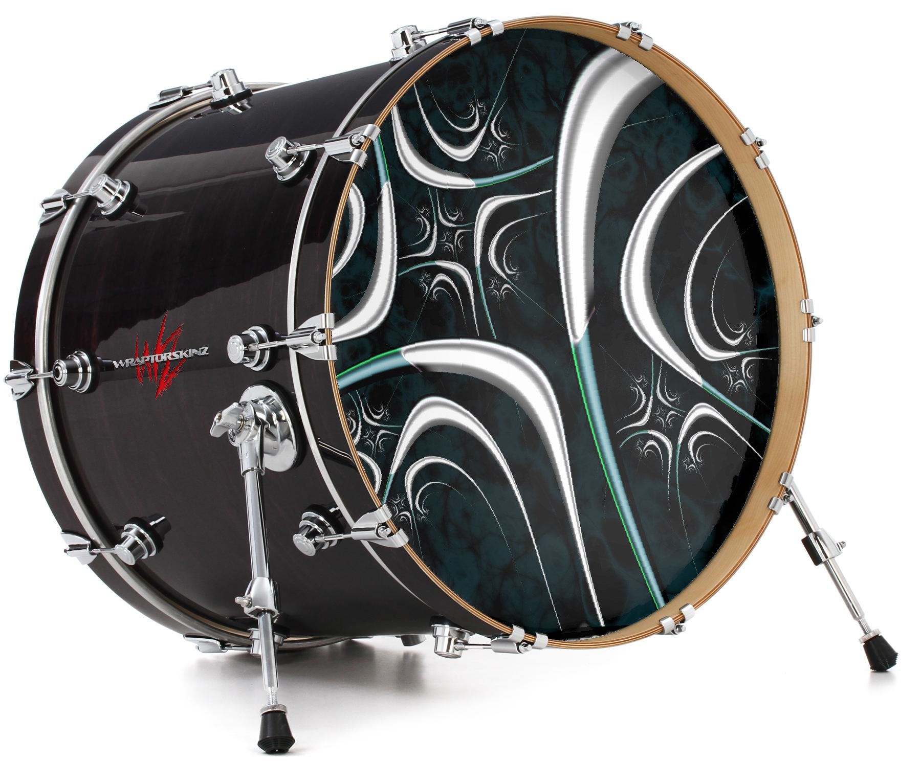 This design also available in other sizes. WraptorSkinz® skin wraps compatible with most kick drum heads. Printed using superb photo quality designs and vibrant colors printed with special fade resistant inks that last even in direct sun for years. WraptorSkinz are a composite three layer commercial grade materials vinyl. The bottom layer is a air release, grey block out removable adhesive that hides existing graphics on the drum head and is easily applied without air bubbles. The middle layer is a flexible vinyl printed with UV protected, fade resistant inks that deliver superb photo quality designs in vibrant colors. Finally, we bond a professional grade laminate over the entire skin adding a glossy protective finish.